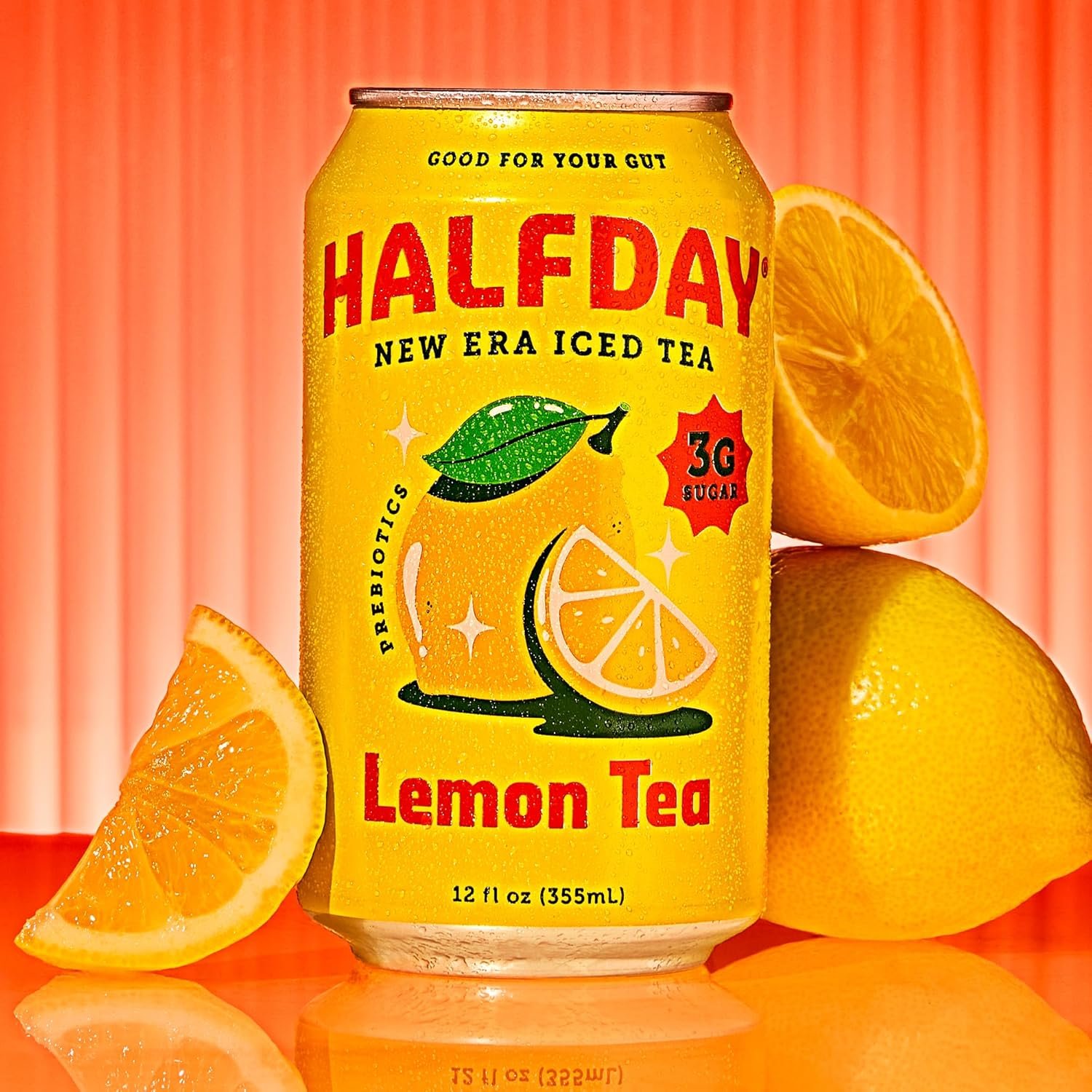 NEW ERA ICED TEA: Gut-friendly iced teas that make moments of freedom even sweeter. Made with 3g of sugar, 6g of prebiotic fiber and nothing artificial, Halfday is iced tea for the new era.