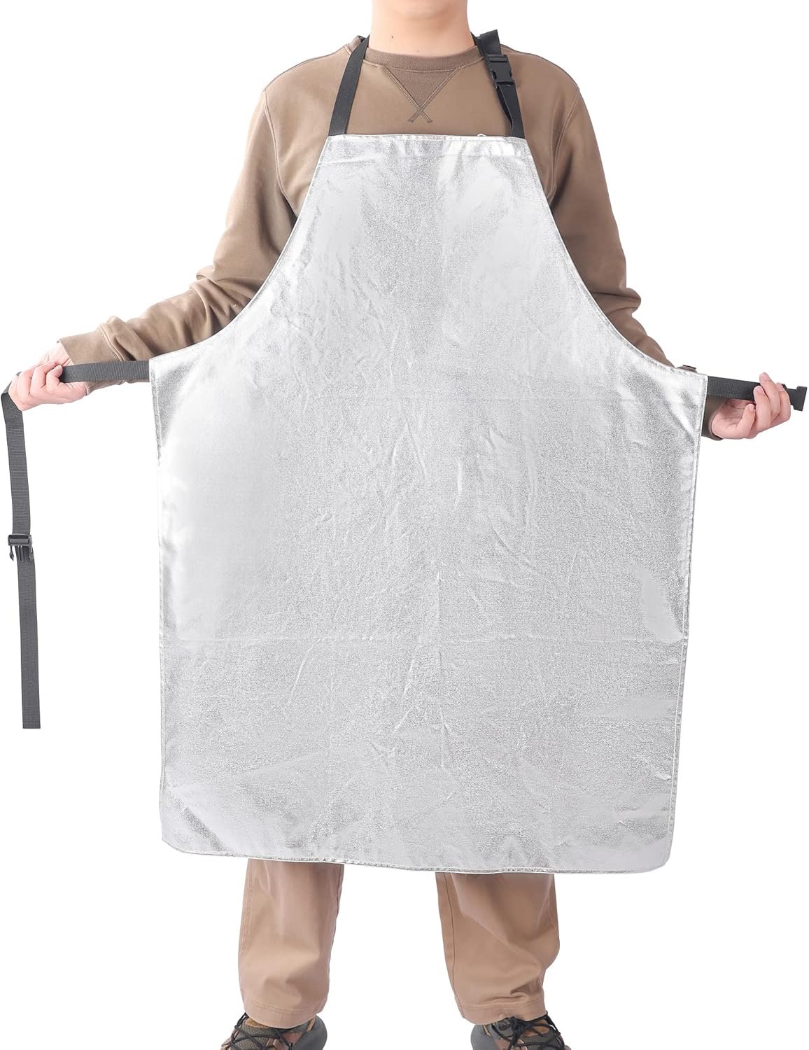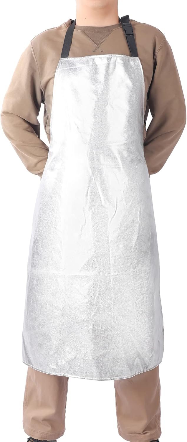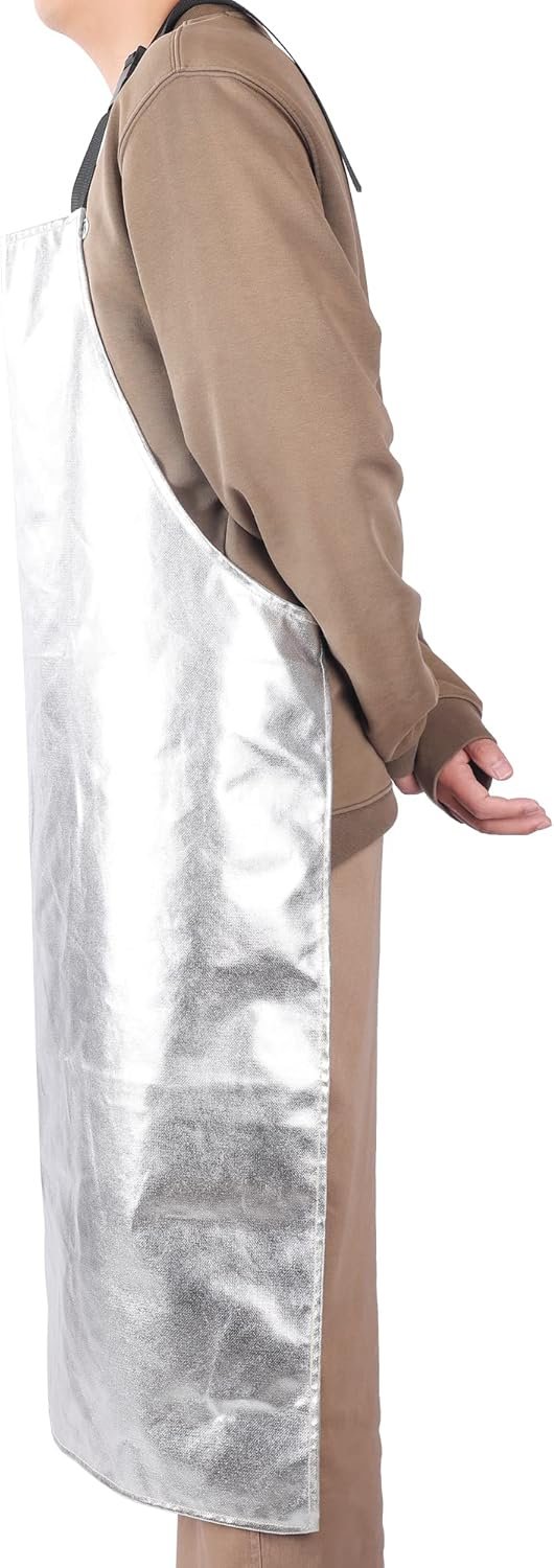 Egowz Aluminum foil Apron has good high-temperature resistance and radiation heat resistance, and is sewn with fireproof thread; Capable of reflecting 95% of heat, resistant to high temperatures and direct contact temperatures of 600-800 ℃(1112-1472°F), and with radiation temperatures above 1100 ℃(2012°F), the insulation effect is very obvious.Egowz Aluminum foil Apron has many uses, suitable for industries such as electrolytic aluminum, glass, manufacturing, metallurgy, textile aluminum, steel, molten iron splashing, and high-temperature radiation. Wearing it can protect the human body from harm caused by high-temperature liquid splashing.