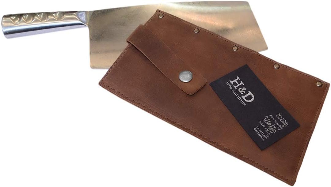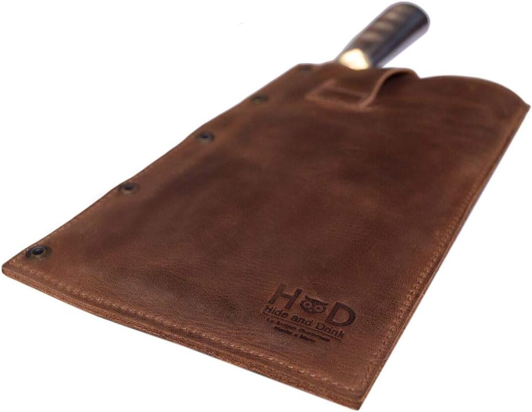 Hide & Drink, Cleaver Butcher Knife Holster, Fits (4.25 x 8.25 in.) Knives, Rustic Sheath, Blade Cover, Kitchen Essentials, Full Grain Leather, Handmade, Bourbon Brown