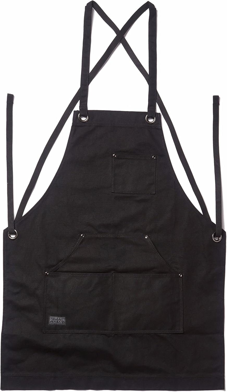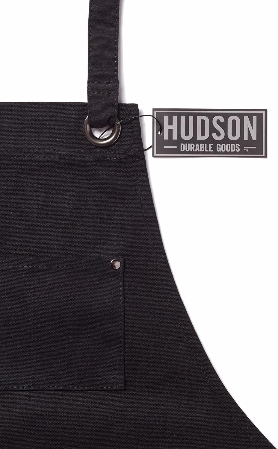 Hudson Durable Goods Heavy Duty Waxed Canvas Apron for Men and Women, Adjustable Crossback Work Apron with Tool Pockets, Water-Resistant – Fits up to XXL, Black
