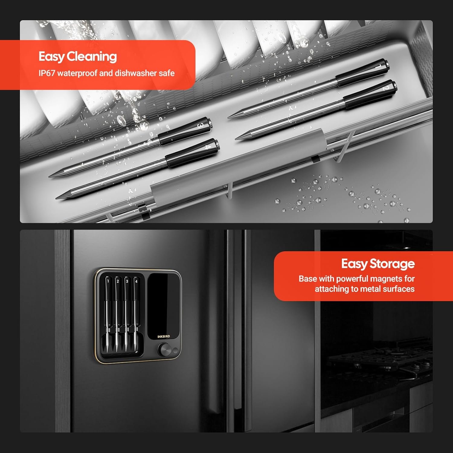 Precision Monitoring with 4 Probes: This food meat thermometer lets you track multiple meats at once with accuracy of ±1°F -perfect for holiday feasts or weekend barbecues. No more guesswork and no more juggling single probes. And this thermometer has a wide temperature measurement range, food temperature support range: 14~212℉, and ambient temperature support range: 32~572℉