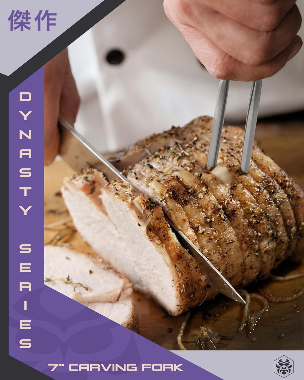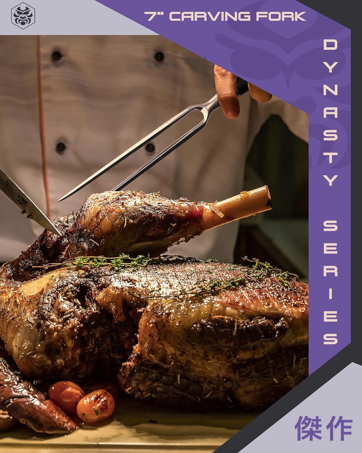 THE DYNASTY SERIES — Dazzling and opulent. Astonishingly formidable with unparalleled craftsmanship, our Dynasty Series knives and forks were lovingly designed by our master artisans to reflect centuries of traditional cutlery, along with cutting-edge nitrogen-cooled forging techniques, and feature perfectly balanced & ergonomic grips for amazing comfort & safety. Stylish & stunningly gorgeous, this fork is sure to draw the eye in any kitchen!