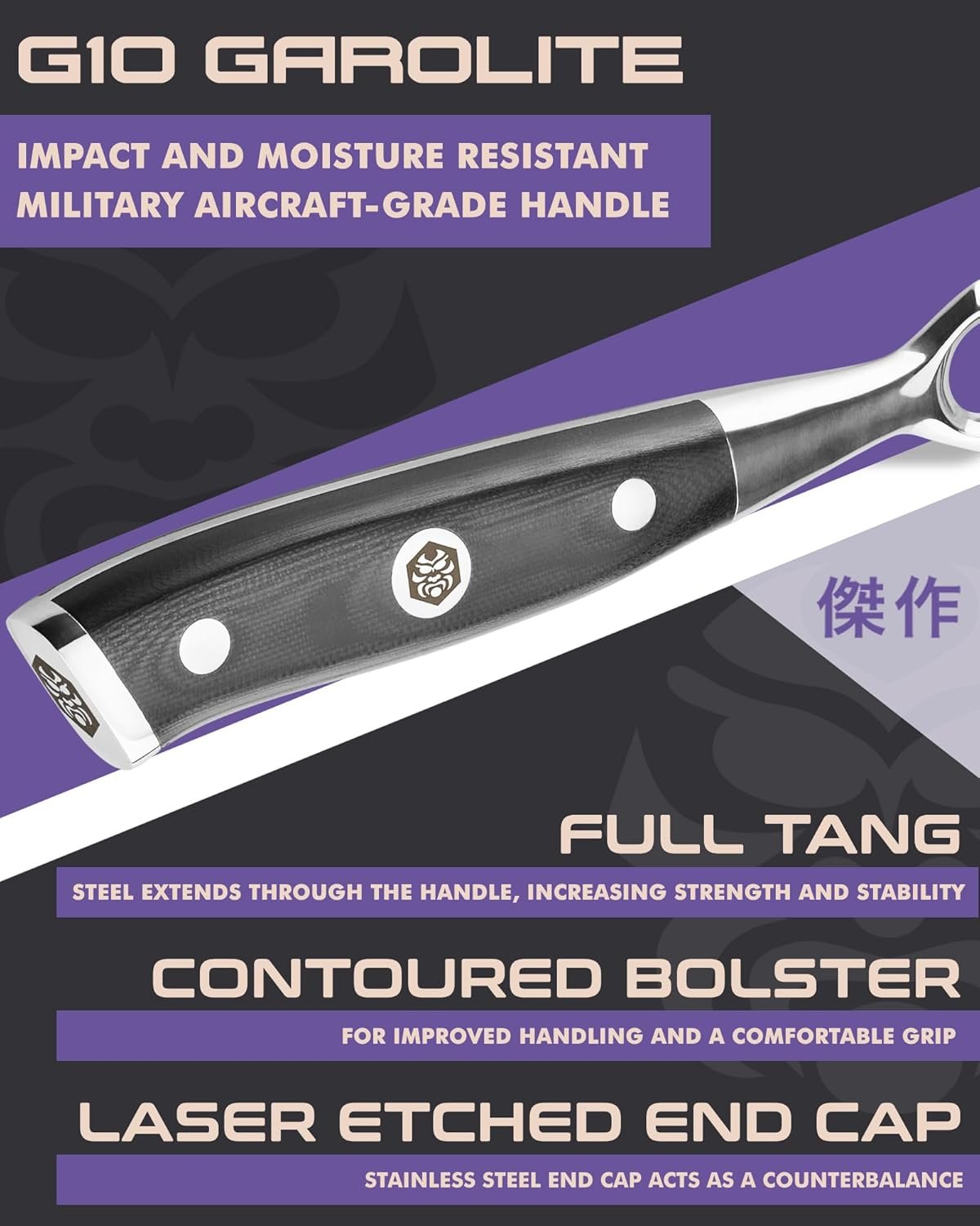 SENSATIONAL COMFORT — When you first grip the handle of this fork it will feel as if it were made for you specifically. Our hand-crafted G10 Fiber-Resin Handle is impact resistant, & nearly impervious to heat, cold, & moisture, while its seamless build ensures no dirt or debris can ever infiltrate its pristine body. Our ergonomic design has ample knuckle clearance for superior control and agility, with triple rivet construction and amazingly superior Full Tang Strength for safe & precise use.