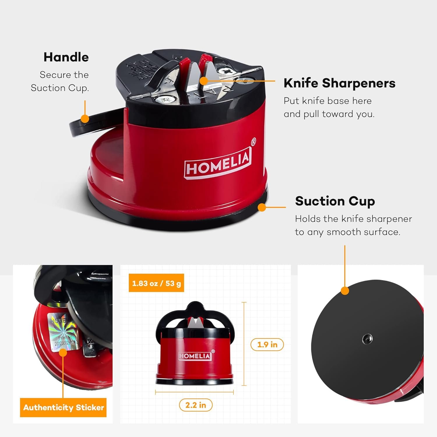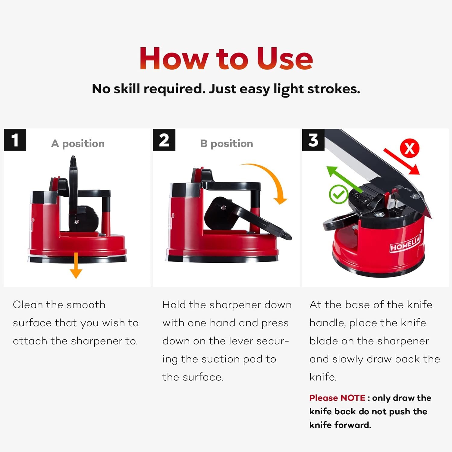 Easily attaches to all smooth surfaces with super suction and disengages just as easy – Sharpens most non-serrated knives