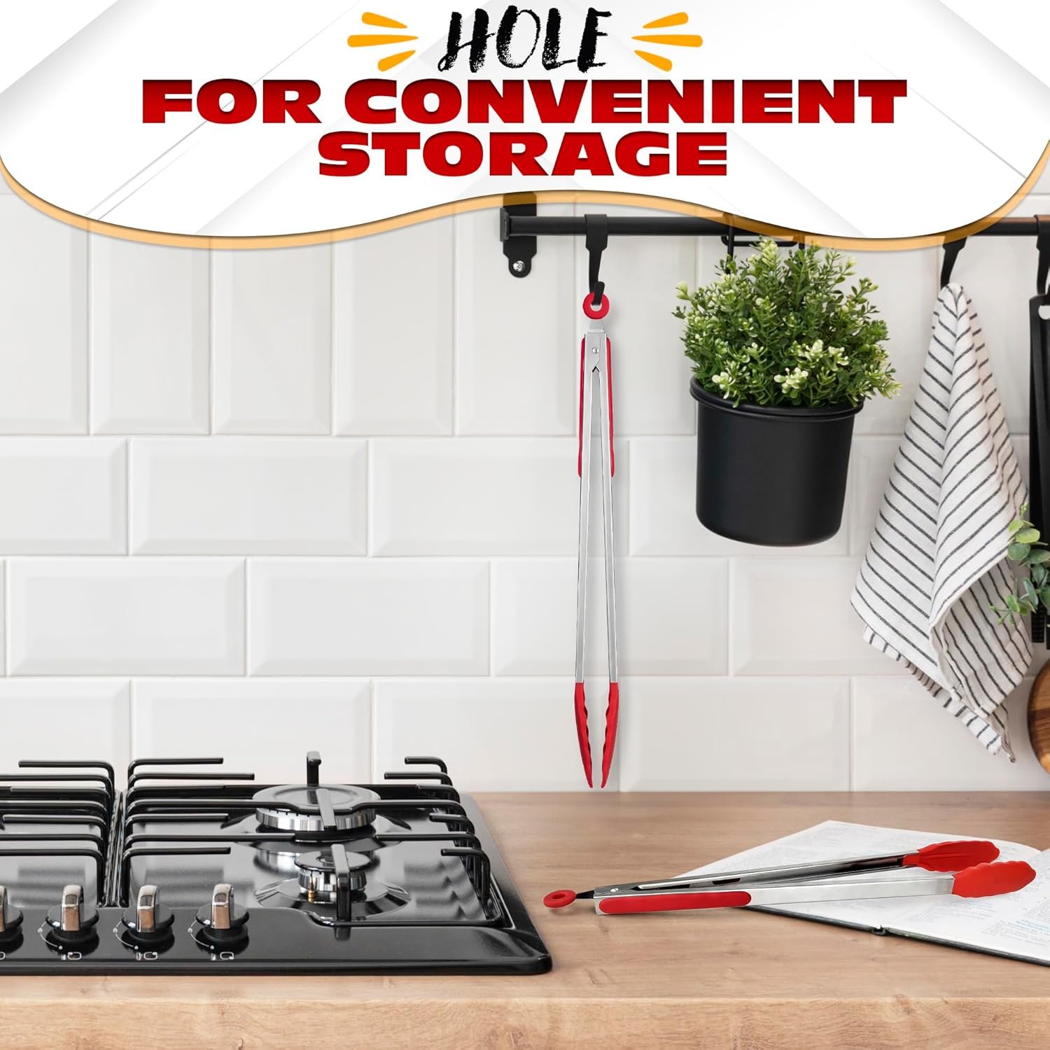 Large Tongs for Serving with Silicone Tip: Heat-resistant silicone tongs for cooking with non-slip silicone tips, stainless steel body, & ergonomic handle—perfect tongs for serving food, hot foods & grilling