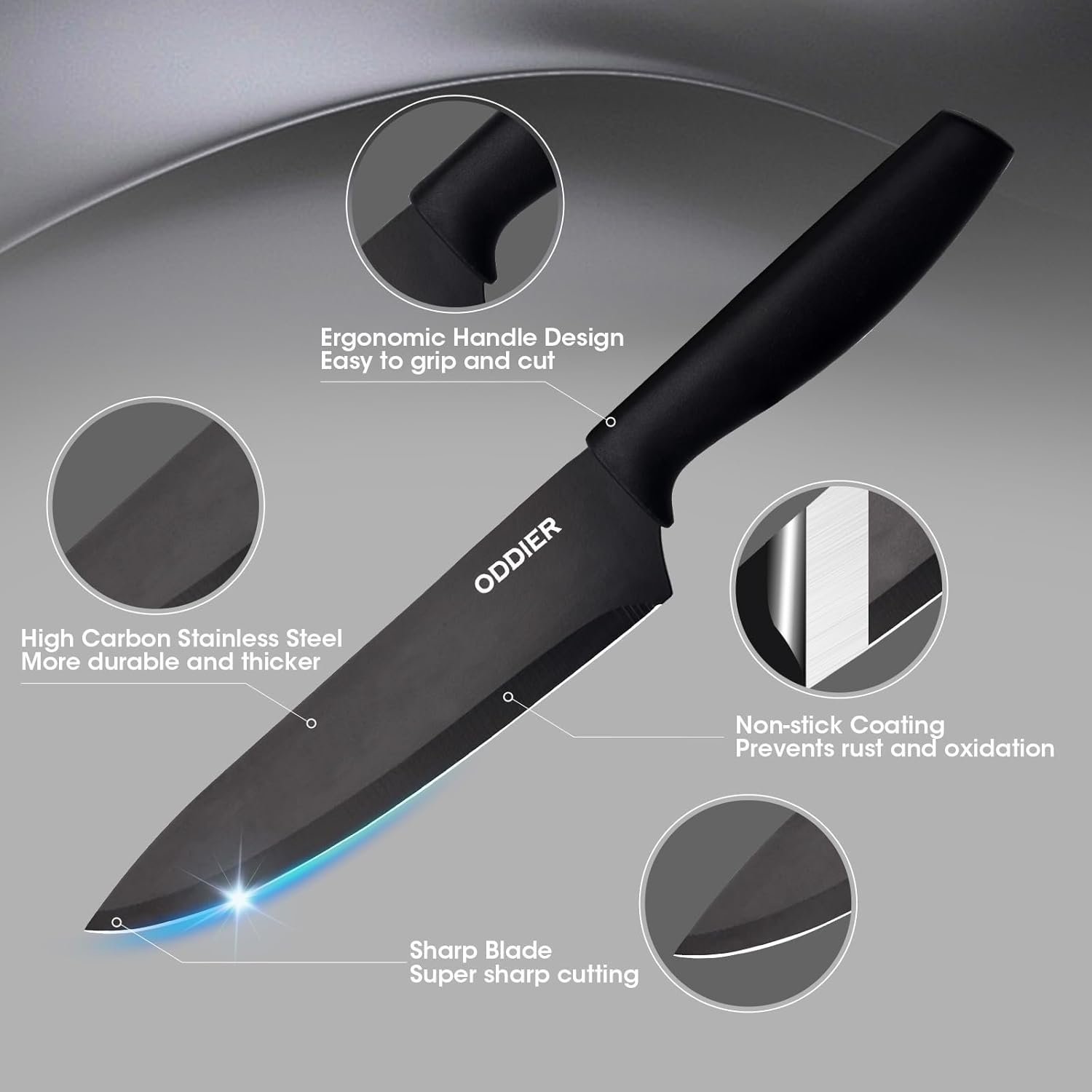 NON-STICK AND RUST RESISTANT – The black coating on the steel prevents oxidation and rusting, so the set remains non-stick and rust-resistant for years. The non-stick coating stops food from sticking to the knives, and it’s easy to clean.