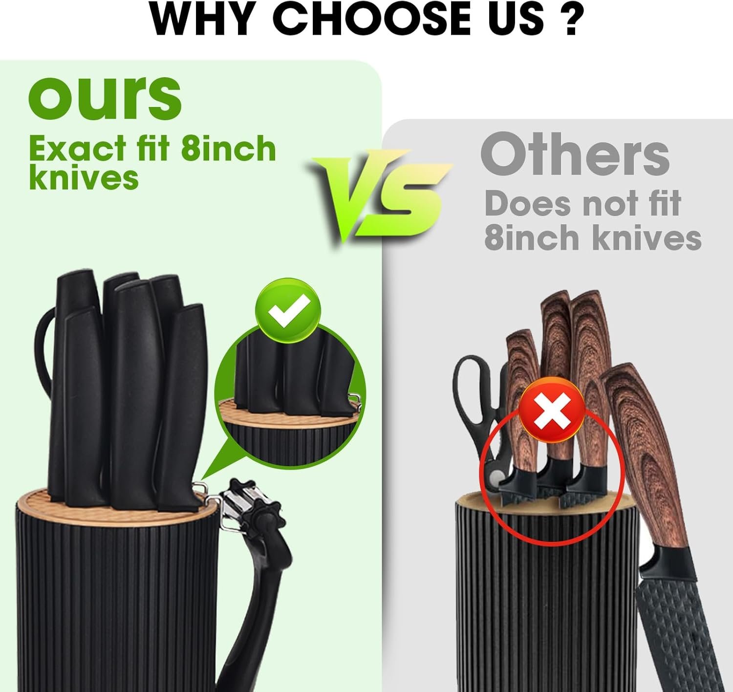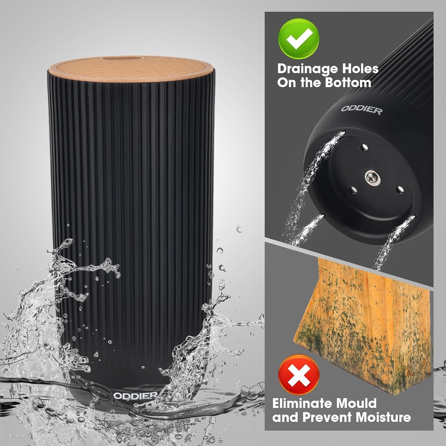 DISHWASHER SAFE – The knife block is made of high density polypropylene and has drainage holes at the bottom. Both the knives and the block are dishwasher safe.