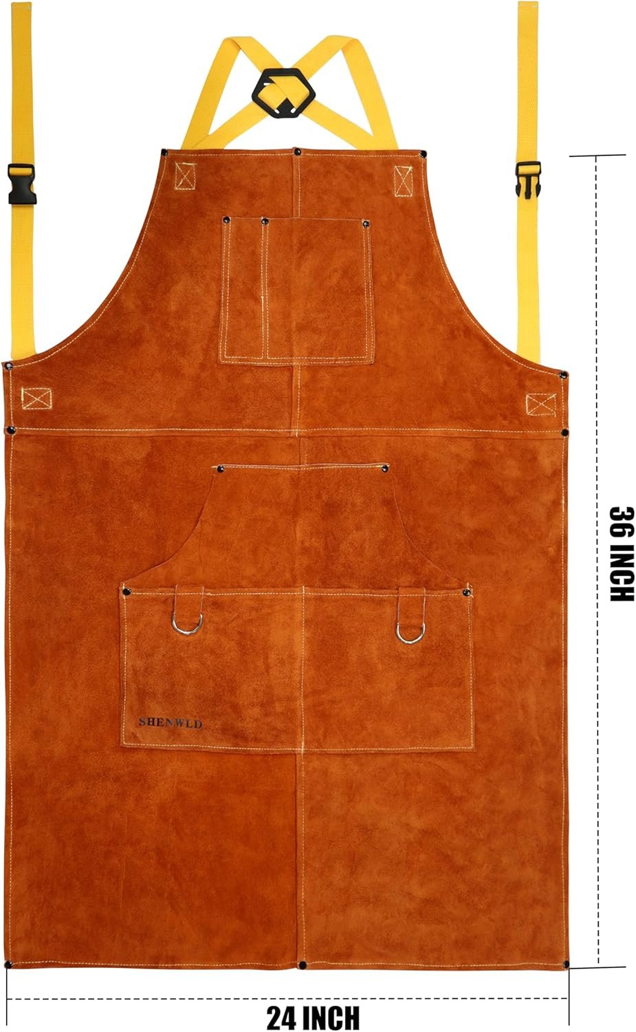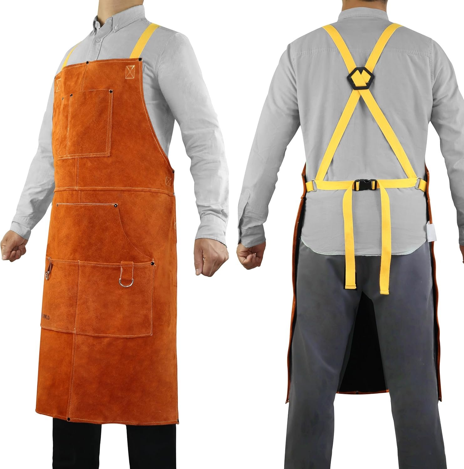 Leather Welding Work Apron, Heavy Duty Heat & Flame-Resistant – for Welders, Blacksmiths, BBQ