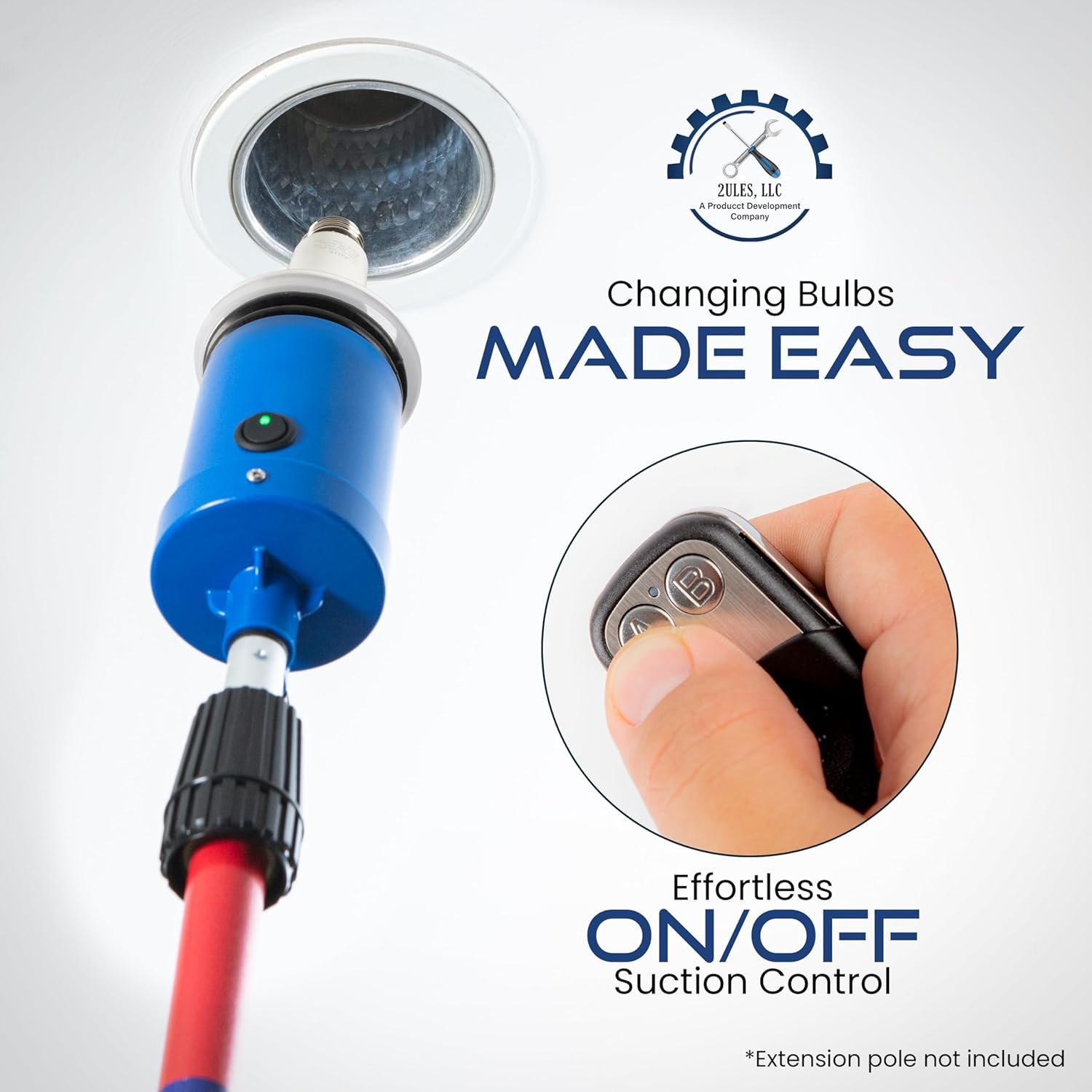 The first one could only be turned on and off about 2″ away, so I emailed 2ules and they responded quickly and we’re good about the return and I ordered another.This one could be turned on about 2′ away, I really needed this tool for 8 par38 bulbs in pot lights replacement that are very high, I’m 6ft on a 10ft step ladder with a homedepot bulb changer pole fully extended, (the attachments sucked that came with the pole, light falling off and cant unscrew them).This job was over tile and there are lots of large windows all around with alot of breakables in the house so I was a bit stressed about the job.I found that if you remove the cover on the attachment end and pull out the vacuum pump and battery that there is a little circuit board with an antenna in there and if you un coil the antenna it worked from about 20ft away in line of sight, so I drilled a small hole through the plastic cover and pulled the antenna through leaving it straight.After this simple mod it worked really well, I couldn’t have done this job with out this tool and I won’t ever do this job in the future without this tool.This company responds to emails quickly and is great to deal with as well.