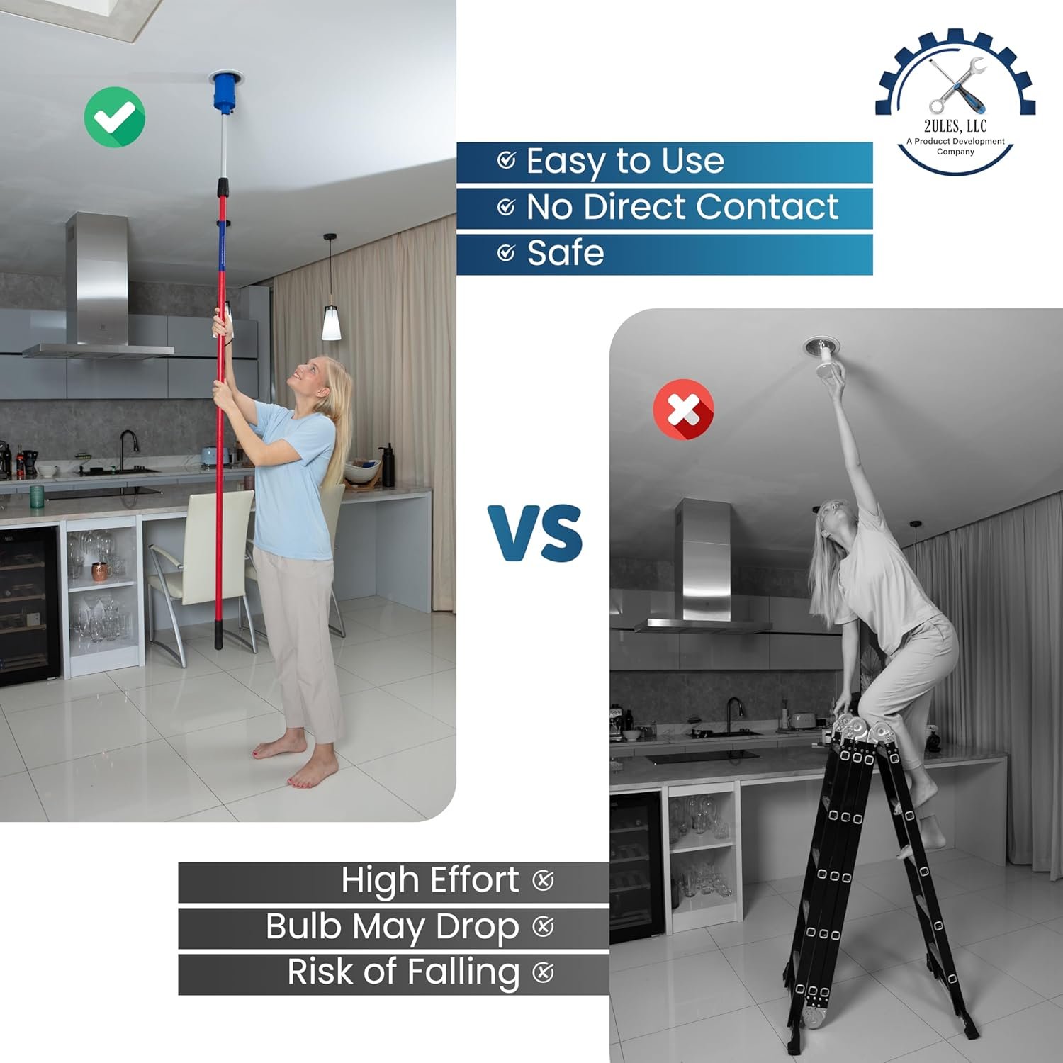 This device is a real game changer for changing high ceiling lights. I found it to be easy to use and well-designed and manufactured. I would highly recommend this gadget for people who canât get on ladders or who have high ceilings. I read a couple of the one and two star reviews and am glad I ignored them and took a chance on this product. YESâ it does not include the pole but that is clearly stated in the descriptionâ read it. Someone complained that the suction wonât work on a dirty bulbâ DUH. Use the device with a rag to wipe off the dirty bulb first and then watch it work perfectly. I found the product to be well worth the money I spent on it. Iâve tried cheaper ones and they donât work. You get what you pay for! For what it does and the ease with which it does it, this thing is a bargain, in my opinion. Now I donât dread changing light bulbs, nor do I have to hire someone to come in and do it for me. Best of allâ NO MORE LADDERS. Again, highly recommended to everyone who reads this!