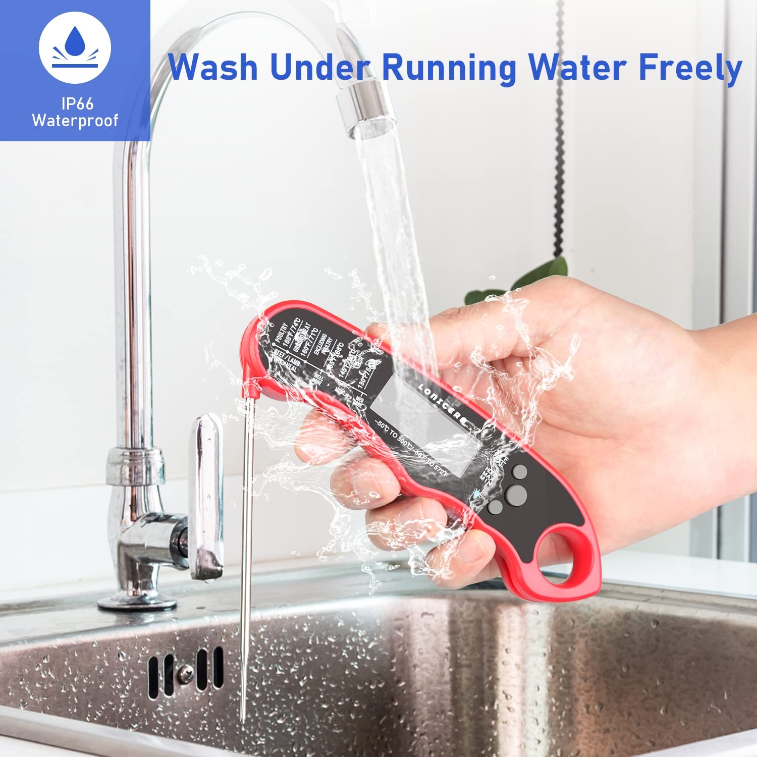 Lonicera Meat Thermometer Digital for Cooking Food. Waterproof & Instant Read for Kitchen Baking, BBQ. with Foldable Probe, Backlight & Calibration (Red)