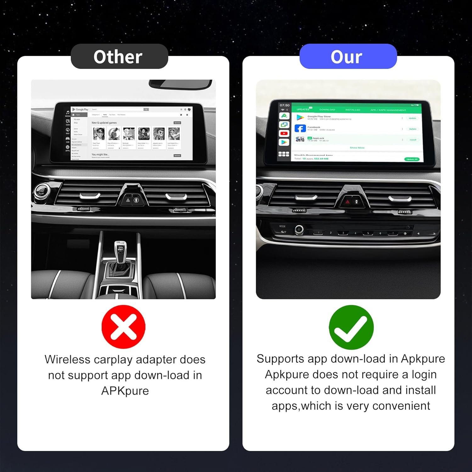 【Upgraded All-in-One Magic ai Box 3.0 Max】Transform your car into a mini-theater with Carplay Box 3.0 Max, featuring built-in video Apps like Netflix, YouTube, Hulu, Prime video, etc., For even more entertainment options, you can easily down-load additional apps from Apkpure. With generous storage (Supports TF card expansion up to 256GB), you’ll never run out of space. Stay seamlessly connected to your phone through Android Auto or Carplay without any lag.