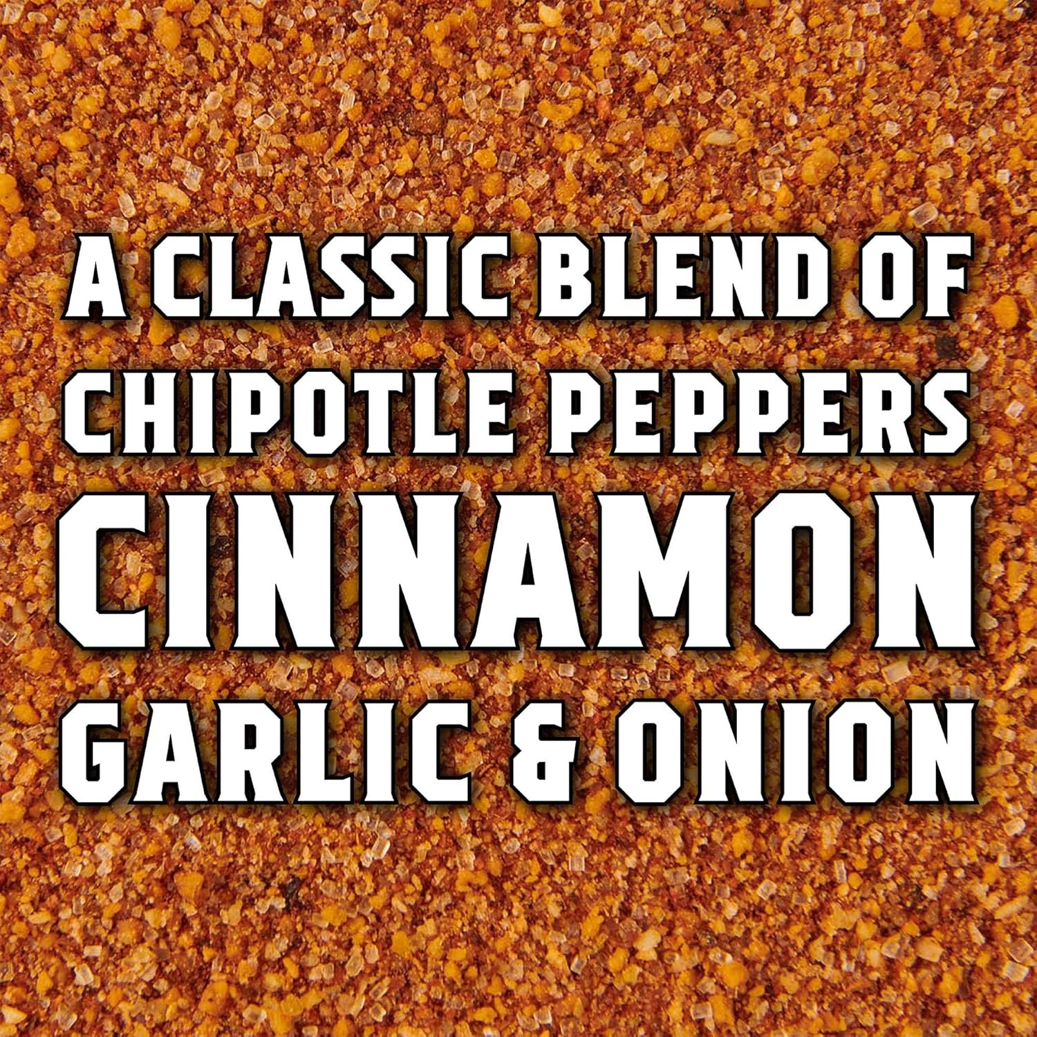 Sweet & Smoky Rub is a blend of chipotle peppers, cinnamon, garlic & onion