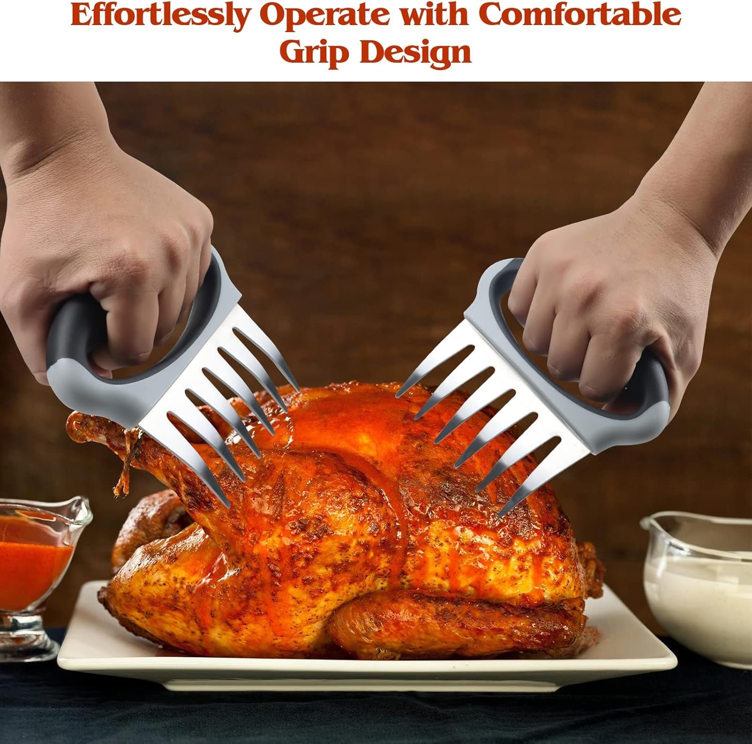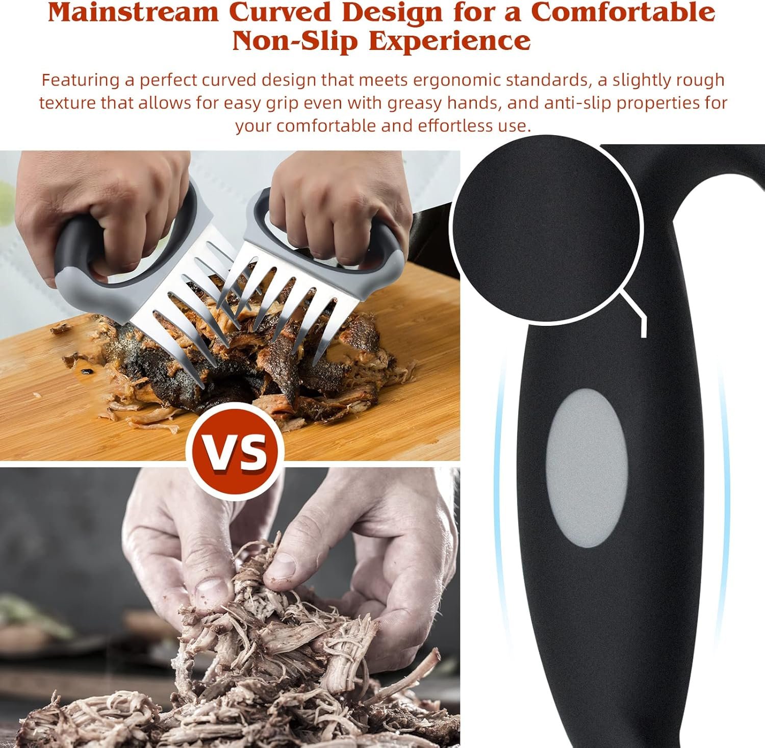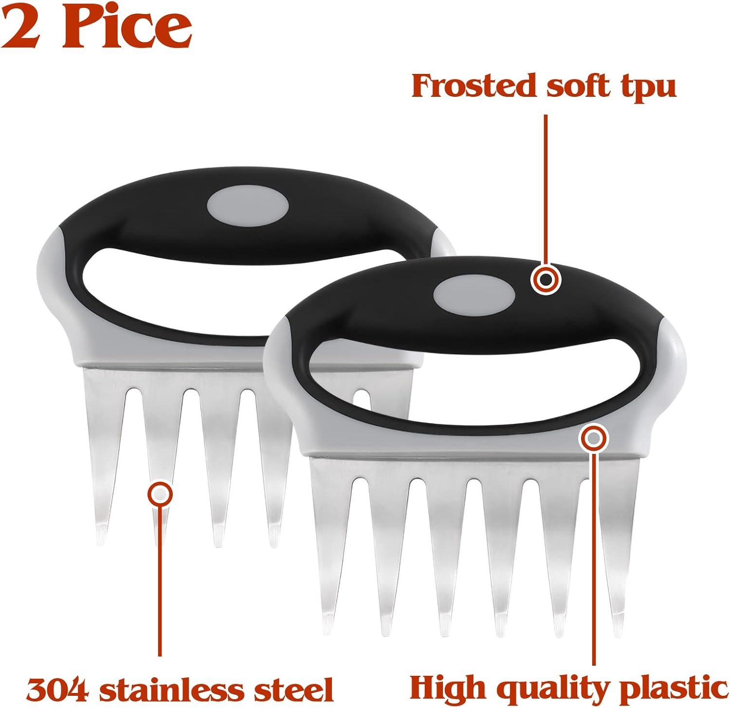 【Ergonomically Designed】Lisnoway BBQ meat paws have a well-designed and slightly textured plastic handle that provides a non-slip grip. Even with greasy hands, it is easy to hold them securely and exert force. Made of high-quality stainless steel, they can effortlessly shred any kind of meat. Bear claws for shredding meat are essential barbecue tools.The Lisnoway BBQ meat shredder claws set will optimize your BBQ experience by 100%.