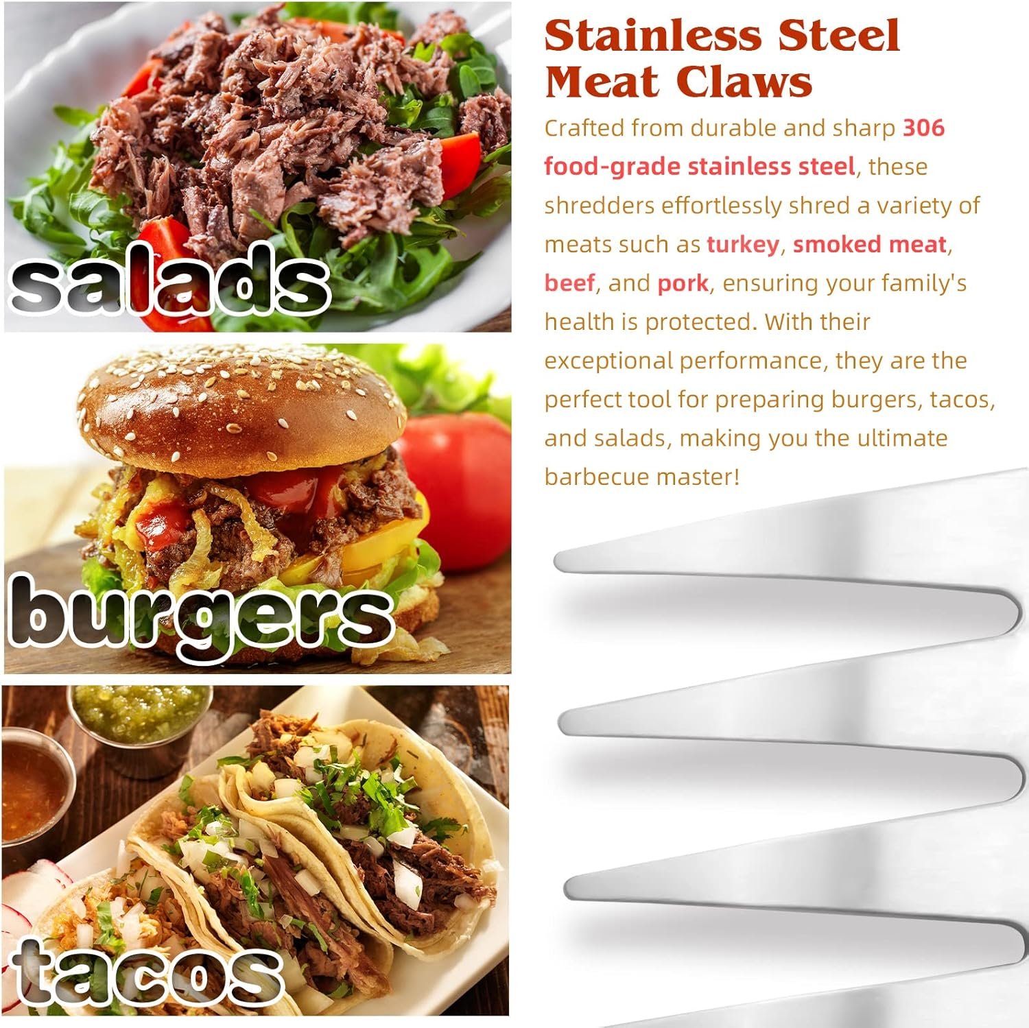 Meat Claws for Shredding, Metal Set of 2 Tools, Chicken Shredder, Meat Shredder Claws, BBQ Shredding Claws, Pulled Pork, Bear Claws, Pork Shredding Claws Shred Cut Meats