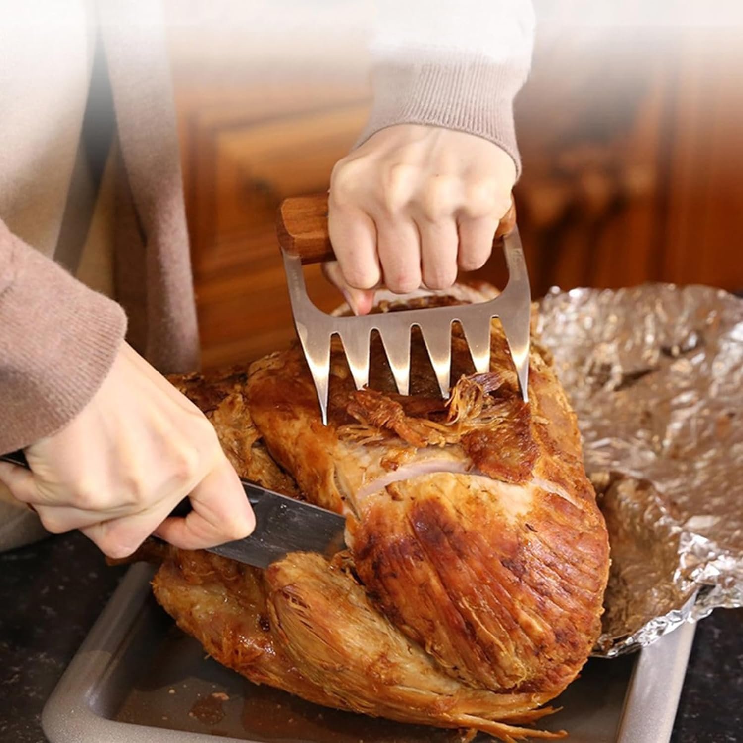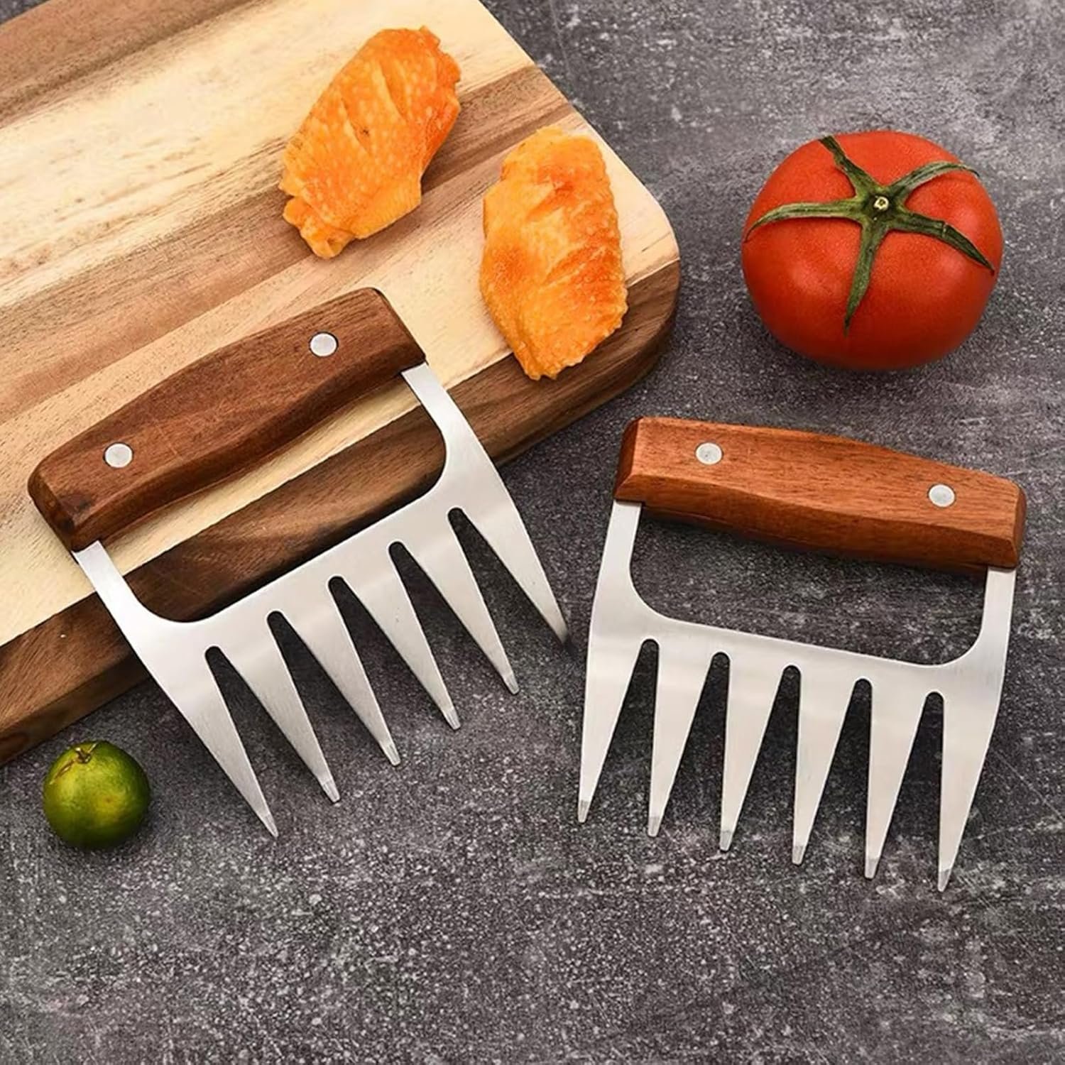 Metal Meat Shredder Claws,Stainless Steel Meat Forks with Wooden Handle for Shredding, Pulling, Handing, Lifting & Serving Pork, Turkey, Chicken, Brisket