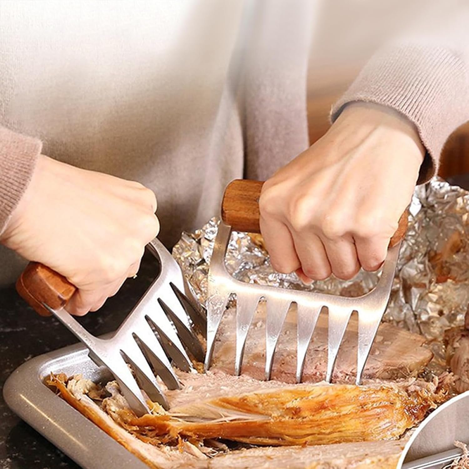 Be the first to review “Metal Meat Shredder Claws,Stainless Steel Meat Forks with Wooden Handle for Shredding, Pulling, Handing, Lifting & Serving Pork, Turkey, Chicken, Brisket”
