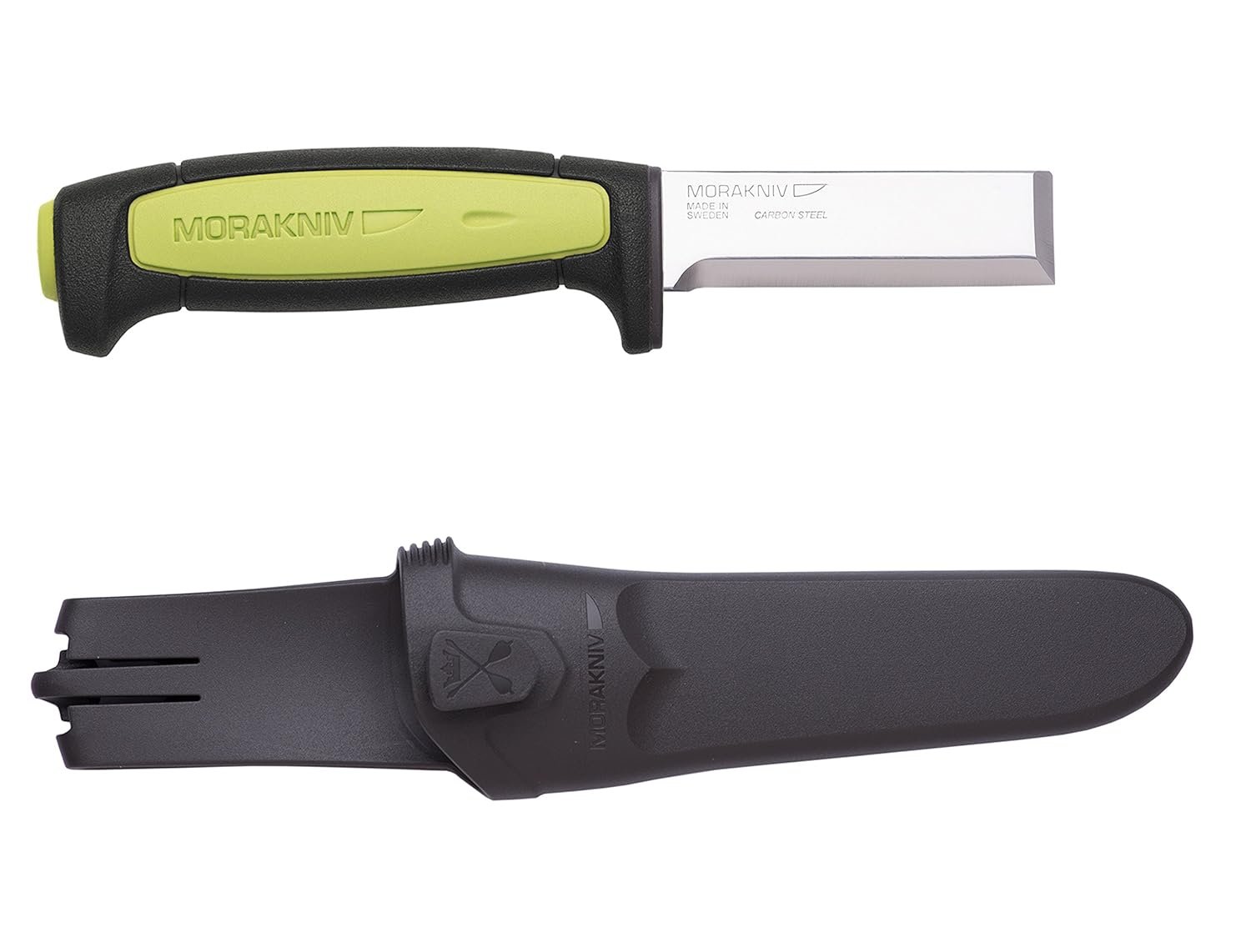 The Morakniv Craftline Carpentry Chisel features a 3.0-inch single-side, honed carbon steel chisel-edge blade for carpentry and wood work. The Sandvik stainless steel blade on the Craftline Carpentry Chisel makes it an ideal choice when working in construction applications, where blades see hard use and are commonly exposed to dirt and moisture. An ergonomic, TPE rubber handle with coil-formed rounding provides extra grip and control. A finger guard on the handle offers additional safety. Included with the knife is a hard plastic Combi-Sheath, which provides a quick-connect feature for attaching a second knife and sheath. Morakniv has been manufacturing the highest quality knives in Mora, Sweden since 1891. Limited lifetime manufacturer’s warranty.