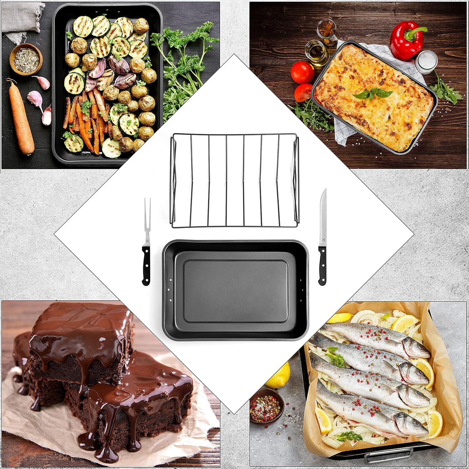Be the first to review “Moss & Stone Carbon Steel Roaster Pan With “V” Shape Removable Roasting Rack Set, 16.5 Inch Rectangular Nonstick Roasting Pan, Turkey Roaster Pan Rack With Carving Fork & Chef Knife”