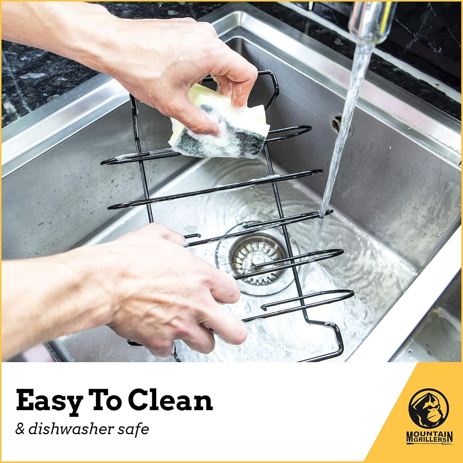 MOUNTAIN GRILLERS BBQ Rib Racks for Smoking, Gas Smoker or Charcoal Grill, Sturdy & Non Stick Standing for gas grill, bbq grill, Holds Up to 5 Baby Back Ribs, Grilling & Barbecue Gifts for Men Black