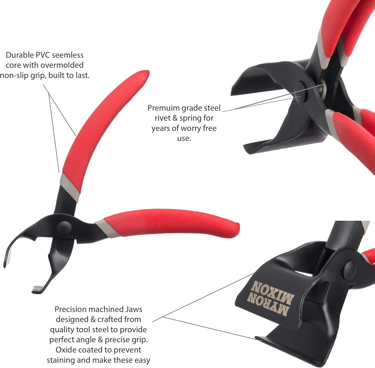 Precision Fine Contact Jaws that make it easy to remove the unwanted membrane on ribs. Non slip grip handles make it effortless when skinning ribs and fish – Make your membrane, silver skin and fish skin removal easy with this heavy duty high quality toolMaterial: 1045 heavy duty steel, PFOA free Teflon coated to prevent corrosion and aid in cleaningErgonomic Handle: Gray PVC under layer, while extending the durability of the Red Non-slip gripHeavy Duty Galvanized Rivet and Heavy Duty Spring Key Product Features