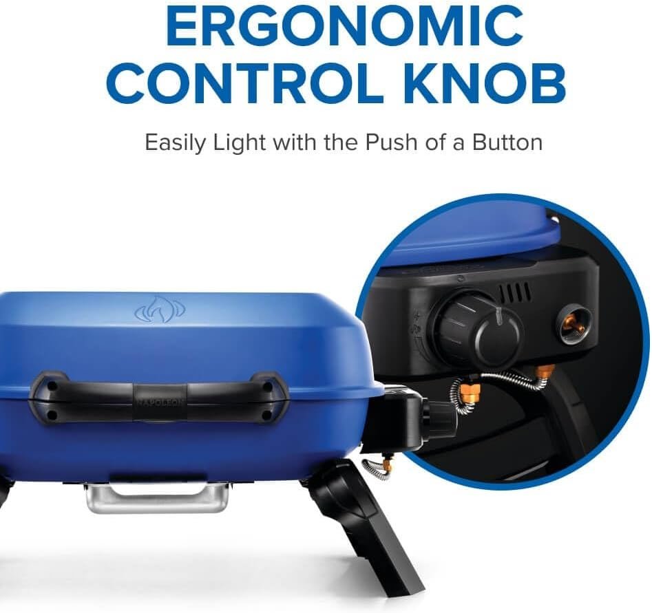 Napoleon TravelQ 240 Compact Portable Propane Gas Grill, Blue, Tailgating, Camping, and Small Outdoor Spaces