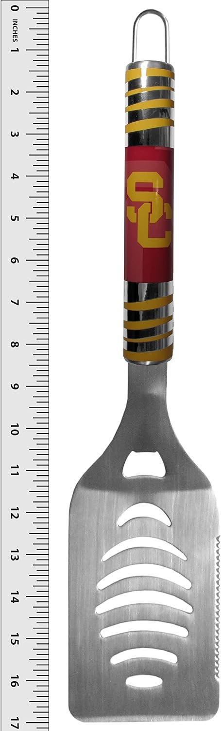 This is the ultimate USC Trojans tailgate accessory! the high quality, 420 grade stainless steel tools are durable and well-made enough to make even the pickiest grill master smile. This complete grill accessory kit includes; 4 skewers, spatula with bottle opener and serrated knife edge, Basting brush, tongs and a fork. The 18 inch metal carrying case is perfect for great outdoor use making grilling an ease while camping, tailgating or while having a game day party on your patio. The tools are 17 inches long and feature vivid team graphics. The metal case features a large team emblem with exceptional detail. This high-end men’s gift is sure to be a hit as a present on father’s day or Christmas.