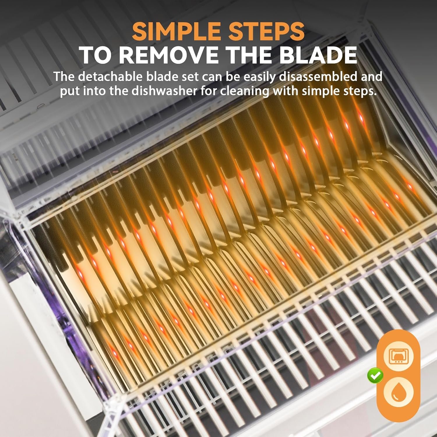 EASY CLEANING—Cleaning the blade of this meat slicer is easy thanks to its straightforward design. Simply remove the upper cover of the machine and the comb, and the blade is ready to be washed with water directly. This ensures that cleaning the blade is hassle-free, allowing you to focus on other important tasks. In addition, our meat slicer is designed for easy maintenance. The blade can be removed and replaced in just three easy steps, saving you time and effort.