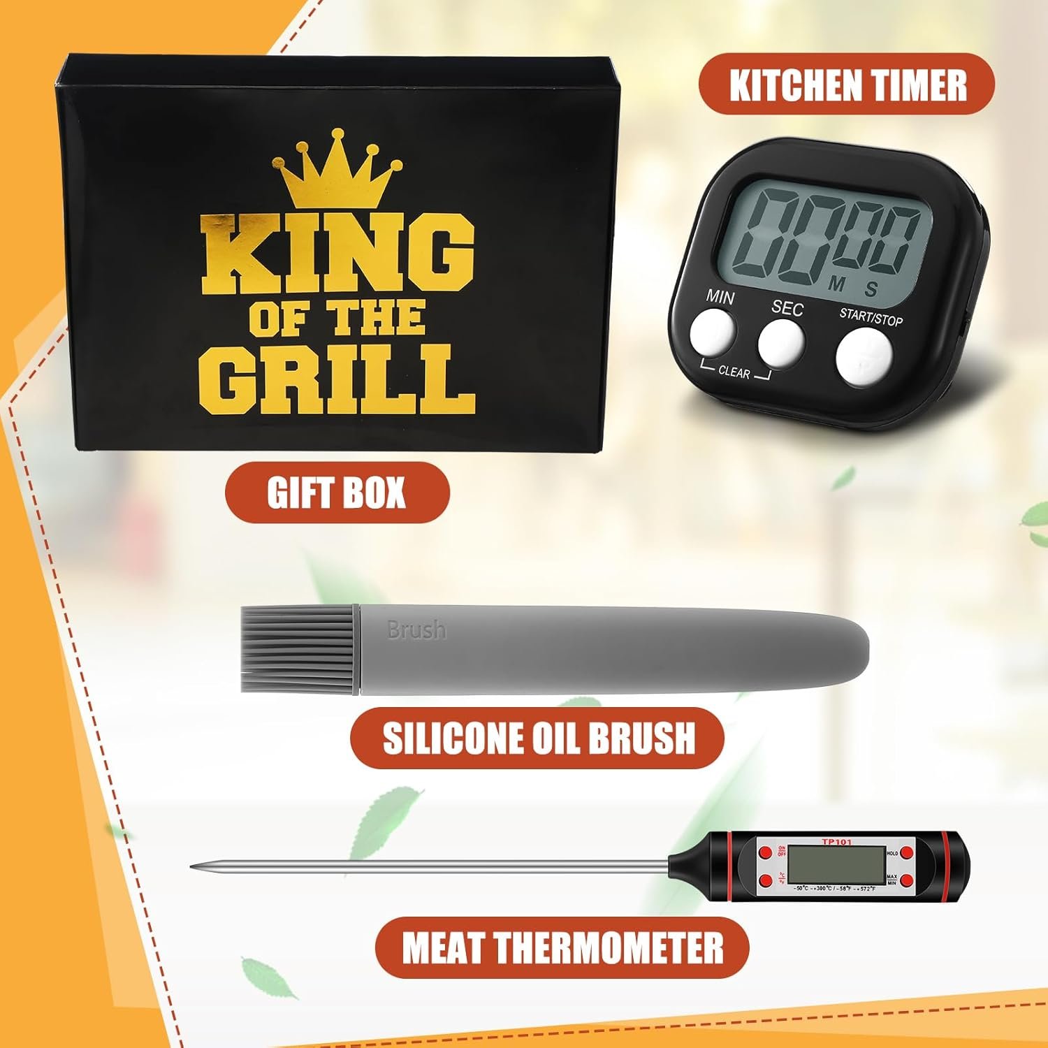 Proper Size: gift box is about 11.8 x 8.7 x 2 inches/ 30 x 22 x 5 cm, the set includes comprehensive accessories, suitable for all kinds of cooking activities, whether it is barbecue, shredding meat, or measuring cooking temperature and time