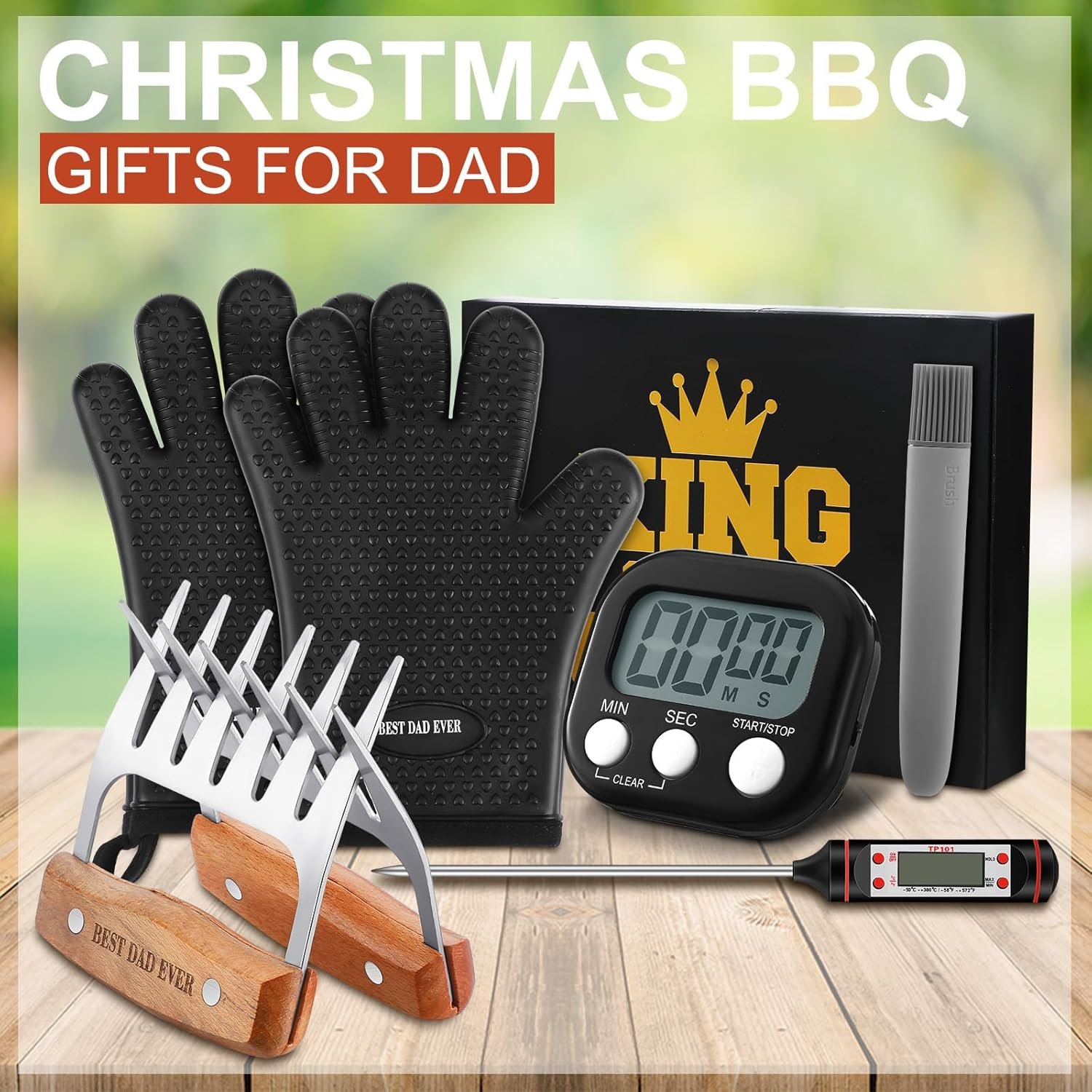 Package Includes: the package includes 2 stainless steel pulled pork claws, 1 brush, 2 silicone smoker gloves, 1 thermometer, 1 timer, 1 gift box, essential tools for father cooking meat, can be ideal gifts for Fathers’ day or Christmas to your dad