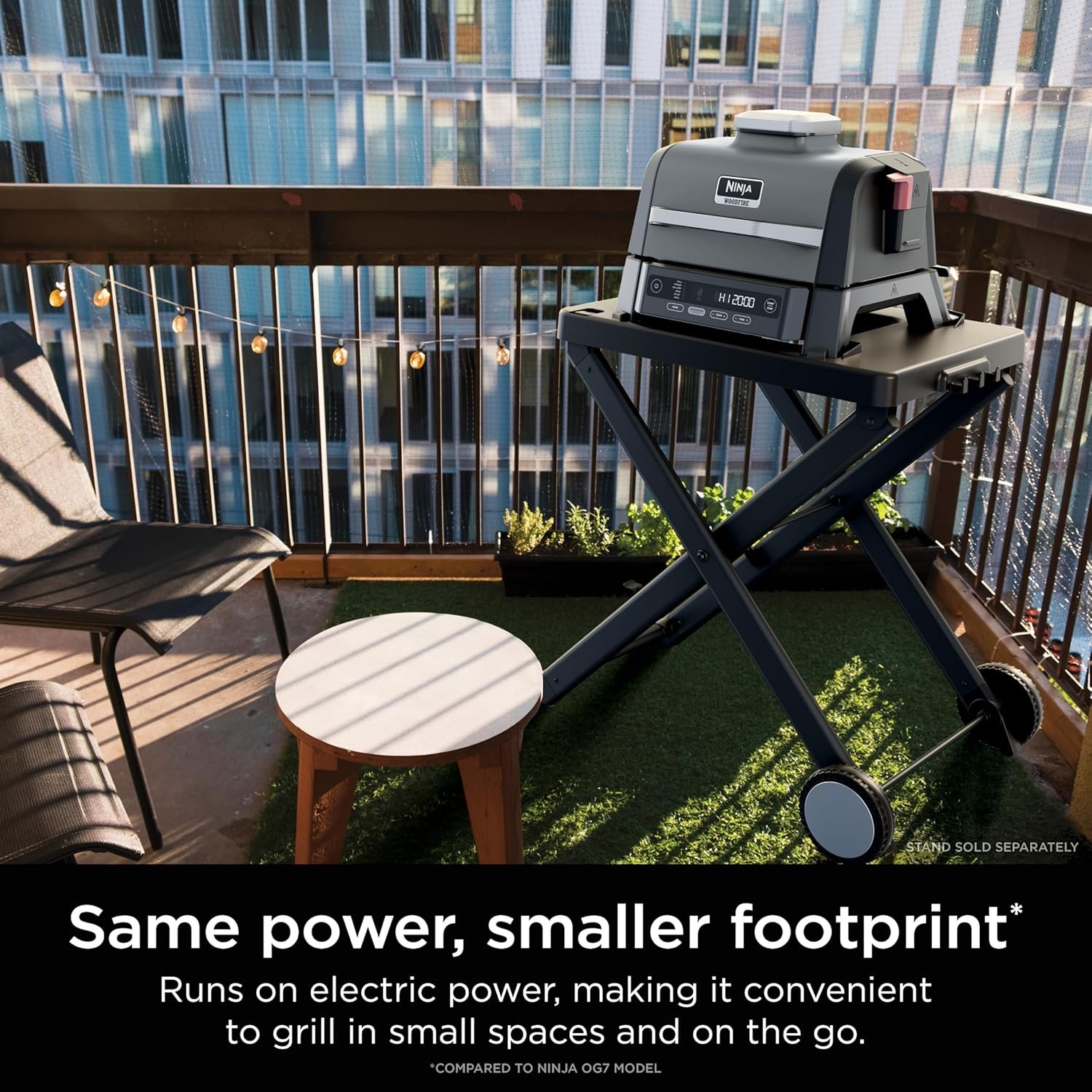 WEATHER RESISTANT: Reliable for regular use, this robust, weather-resistant build suits outdoor spaces, small backyards, or balconies, ensuring year-round outdoor cooking, come rain or shine. *we recommend storing with the Ninja Woodfire Grill Cover