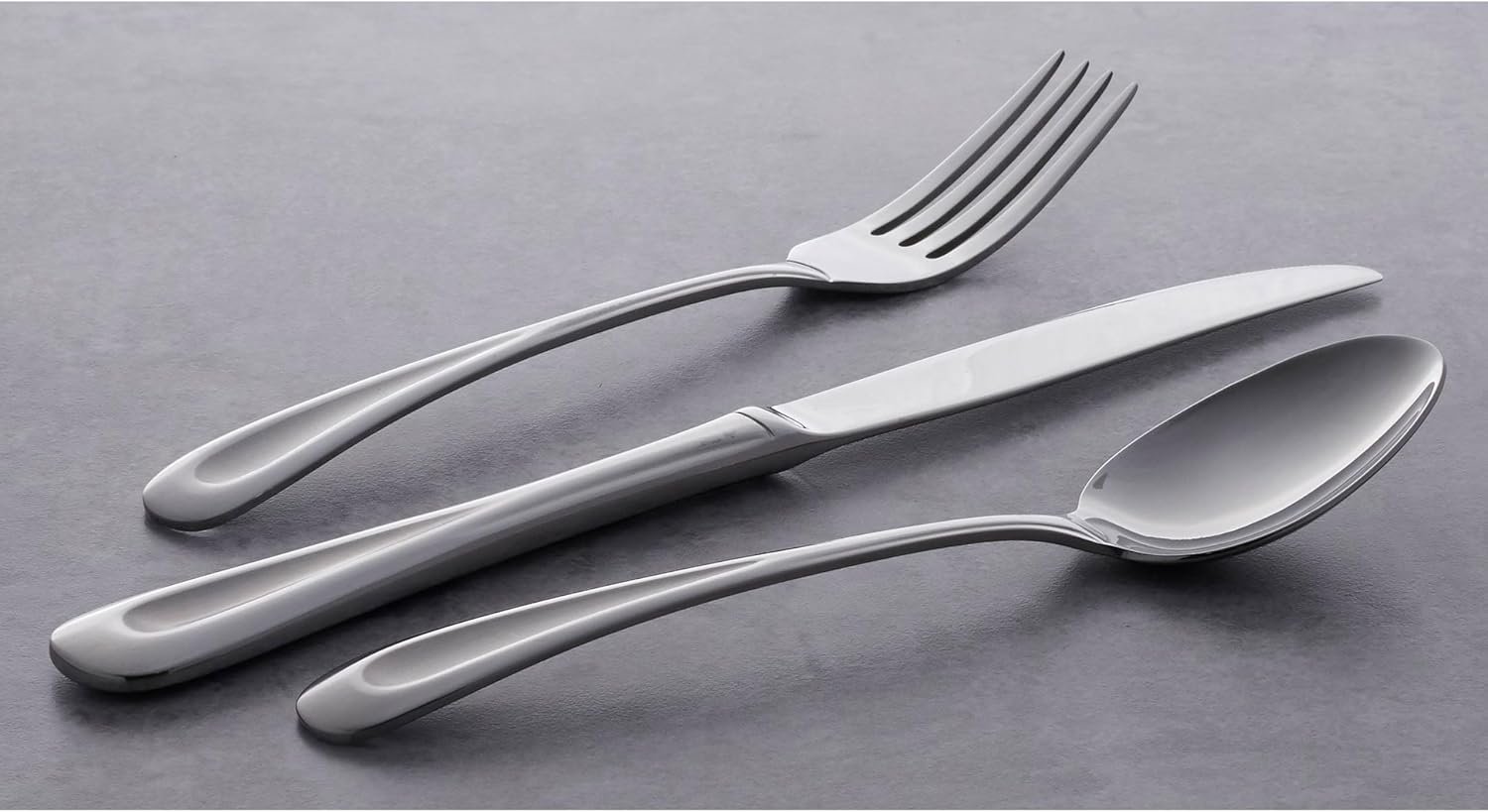Contoured. Contemporary. Cool. This flatware pattern was designed with shape in mind. A recessed well along the bright handle commands your attention with its contrasting satin finish