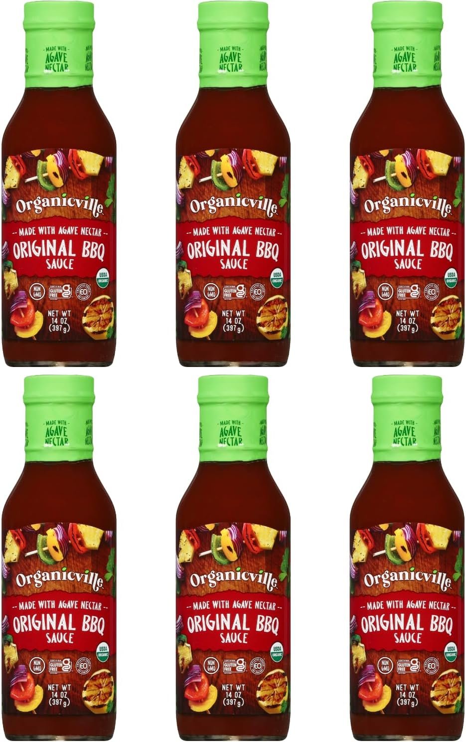 Organicville Original BBQ Sauce – Barbeque Sauce, Sweet, Smoky Flavor, Gluten Free, Vegan, Organic, Non-GMO, Vegan Barbeque Sauce, Gluten Free Barbeque Sauce, Made with Agave Nectar – 14 Oz, 6-Pack