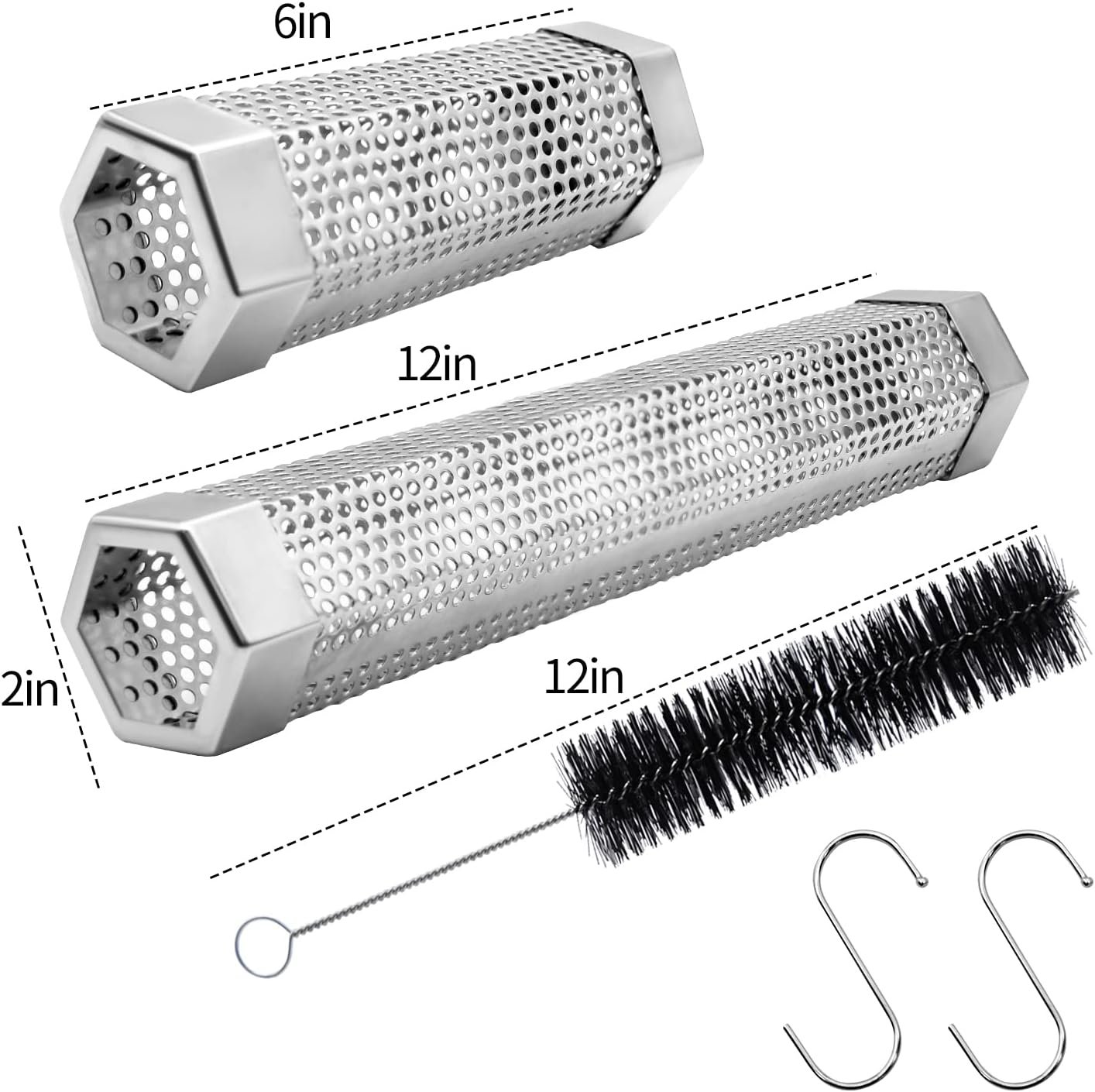 【Package Includes】- It come with 12in&6in pellet smoke tubes, a cleaning brush and 2 S-hook, 12in large capacity can hold enough particles, and can produce a lot of smoke in 5 hours, 6in tube can produce 2.5 hours of smoke, can meet your different needs