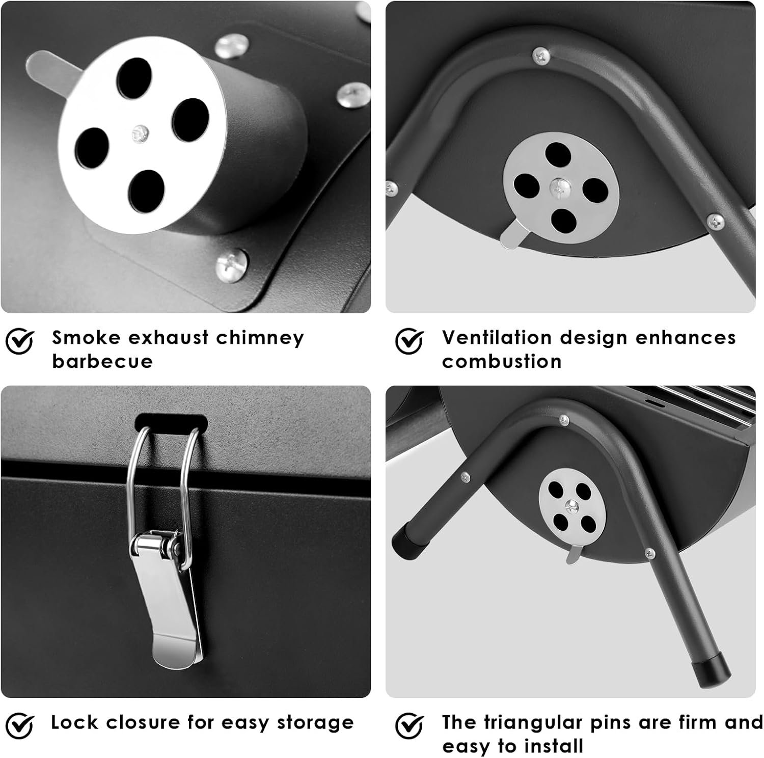 🔥True Portability – Compact as a mini grill (fits in car trunks), yet spacious enough for 12 burgers. Includes a carrying case for camping/beach trips. The ultimate mini charcoal grill that fits in any car trunk yet cooks like full-size grills,Size:15*10inches. more saver space,