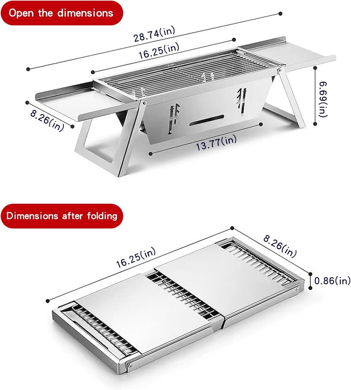 Be the first to review “Portable Charcoal Grill, 15-inch Outdoor Small Grill, Folding Stainless Steel 304 Grill for Camping, Backyard, Boat, Comes with 50 Metal Skewers”