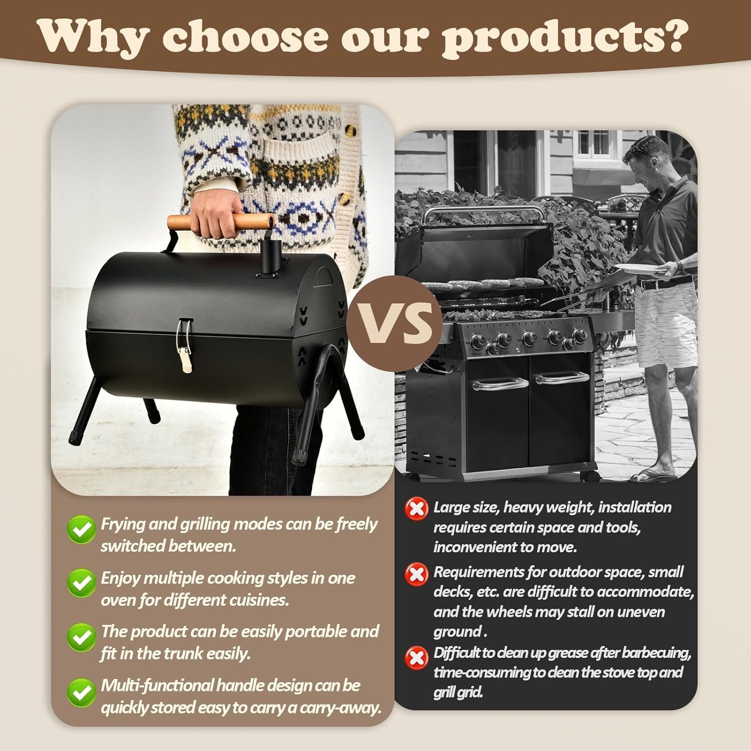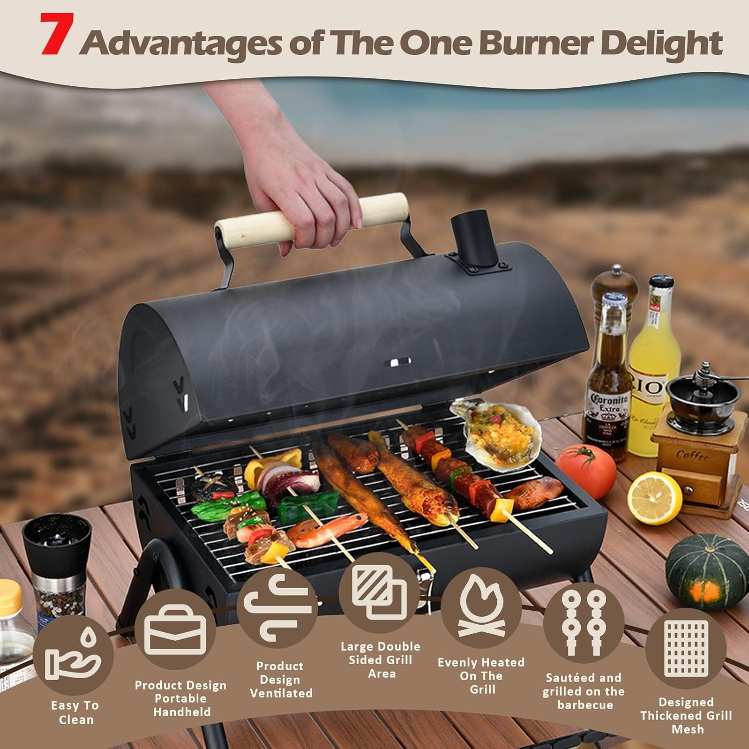 【Easy to Clean】 With a smooth-surfaced grill grate and charcoal tray, cleaning is efficient and straightforward.