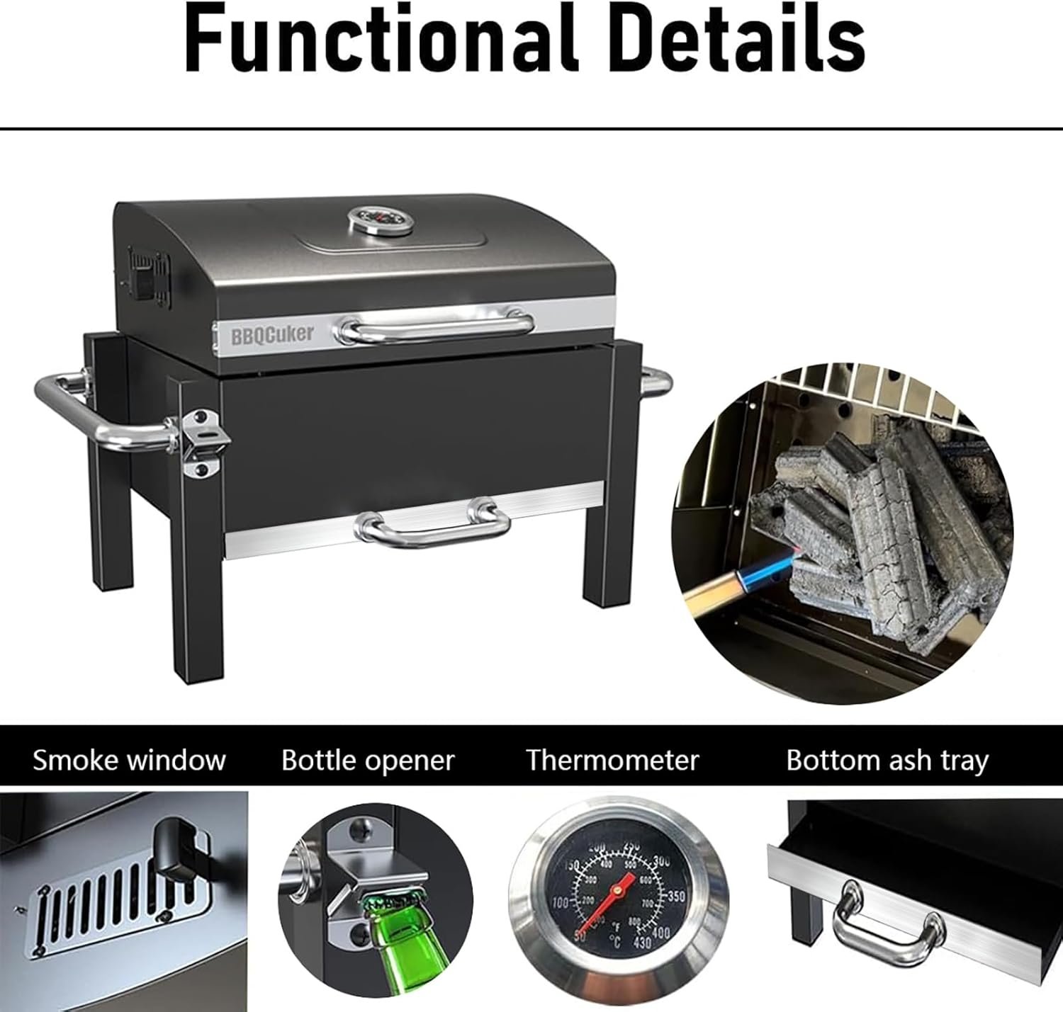 【Precise Control for Infinite Deliciousness】Experience a new level of cooking with our tabletop grill equipped with a precise pointer temperature gauge. Whether grilling, smoking, or baking, portable smoker allows effortless control of cooking temperatures, adding new excitement to your culinary artistry.