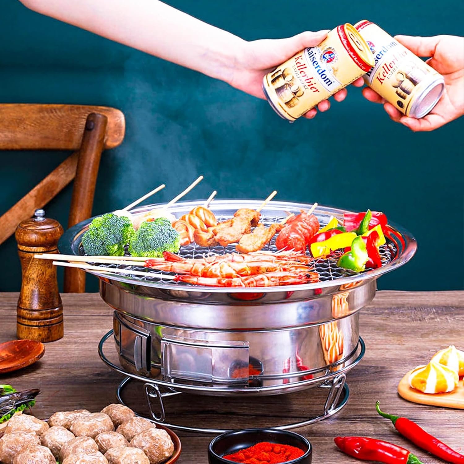 Be the first to review “Portable Korean Style Stainless-Steel Barbecue Grill, Charcoal BBQ Round Grill Stove for Outdoor Camping, Picnicking & Parties 1~4 People, 13.8″ DIA”