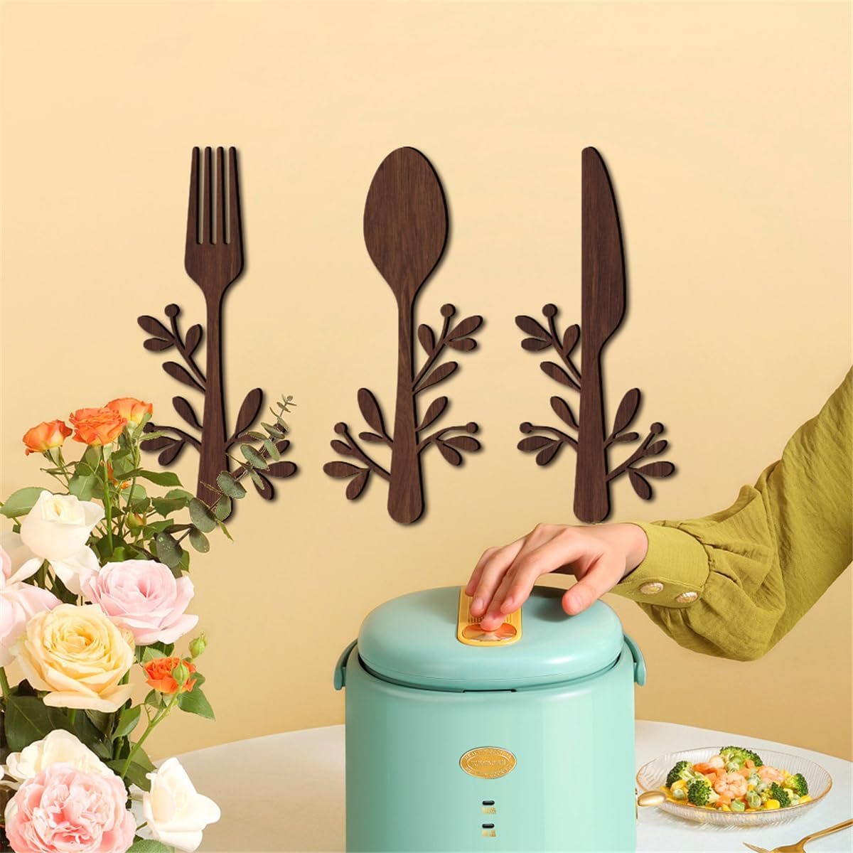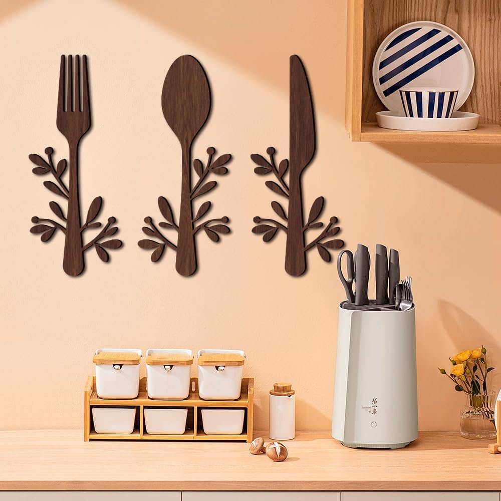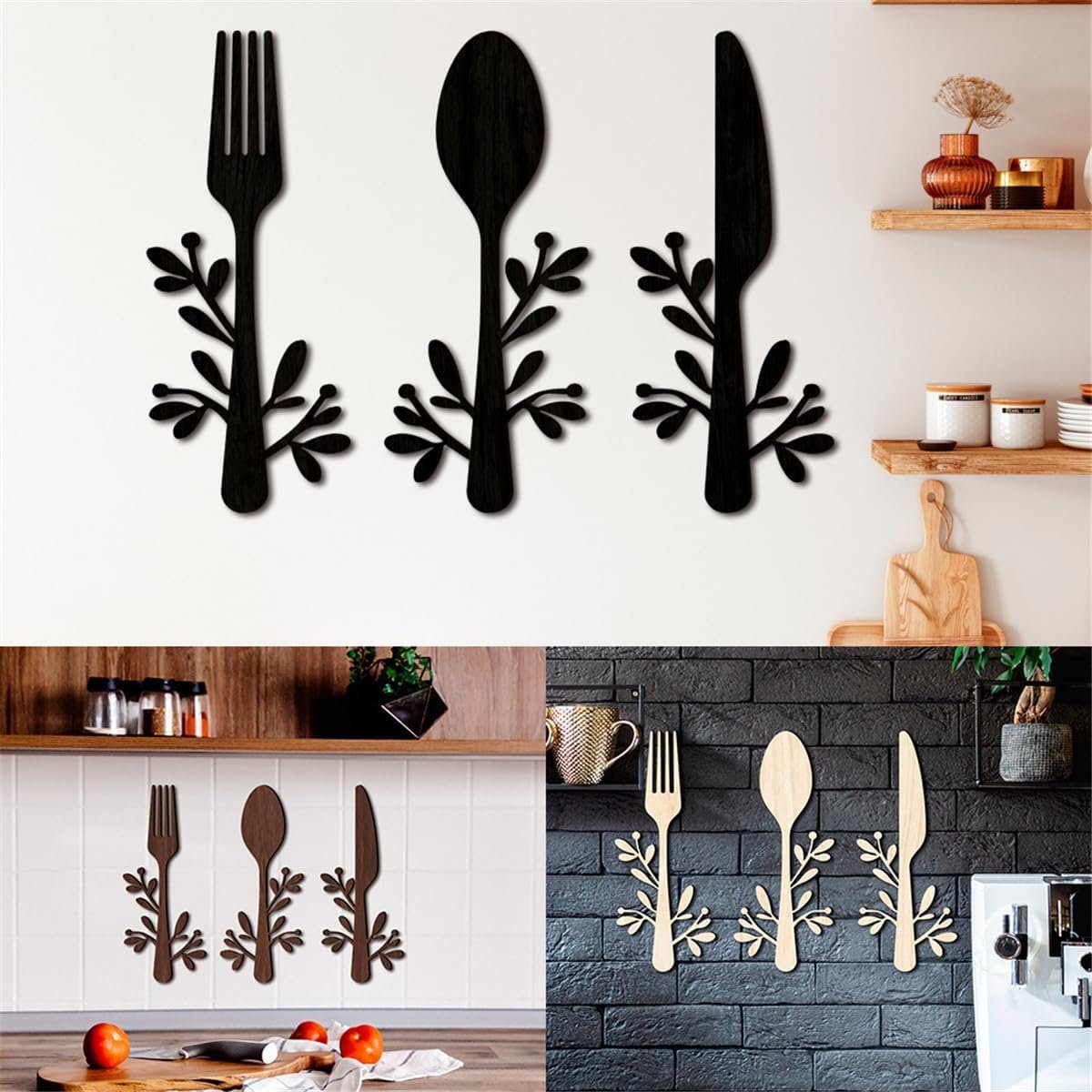 Unique Design: You will receive a set of wood fork and spoon wall decor, including 1 x knife shaped wood sign, 1 x fork shaped wood sign, 1 x spoon shaped wood sign; Each has a delicately carved branch outline, showing extraordinary creativity and personality