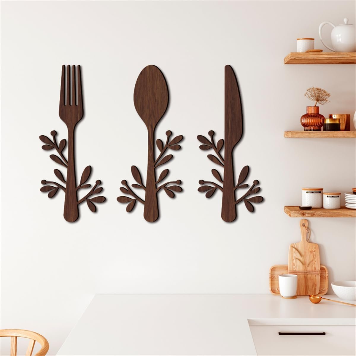 Price Xes Wood Tableware Wall Decor, 3 Pcs Wooden Knife Fork Spoon Wall Art Decor Farmhouse Kitchen Utensils Wall Sign for Kitchen, Dining, Home Decor (Brown)