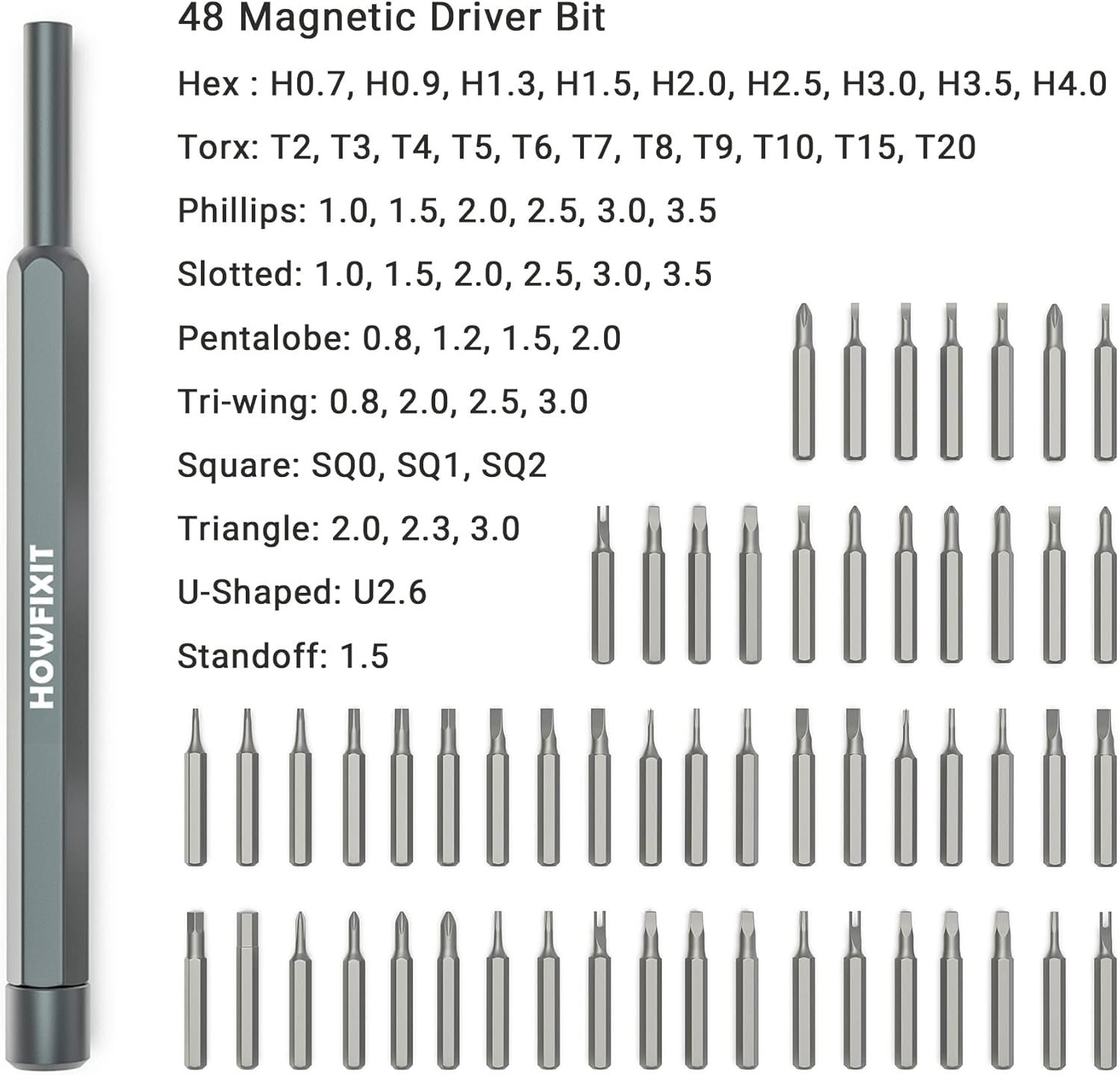 Screwdriver Set includes 48 bits: