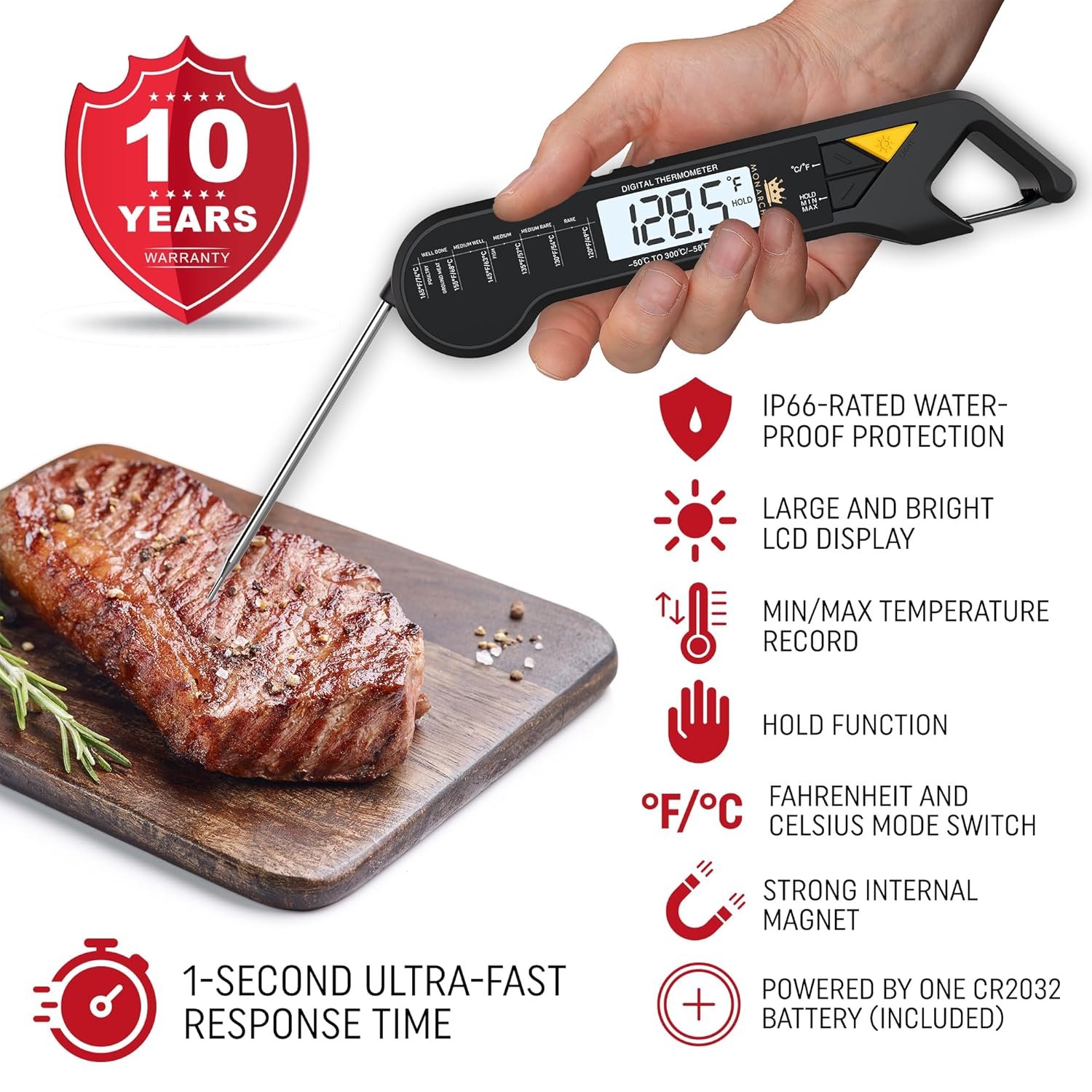 Perfect Gift Year-Round – An ideal choice for Christmas stocking stuffers, Father’s Day, Mother’s Day, housewarmings, and for those who like to cook or grill. Backed by an industry-leading 10-year warranty, this thermometer makes a thoughtful and practical gift that keeps on giving.