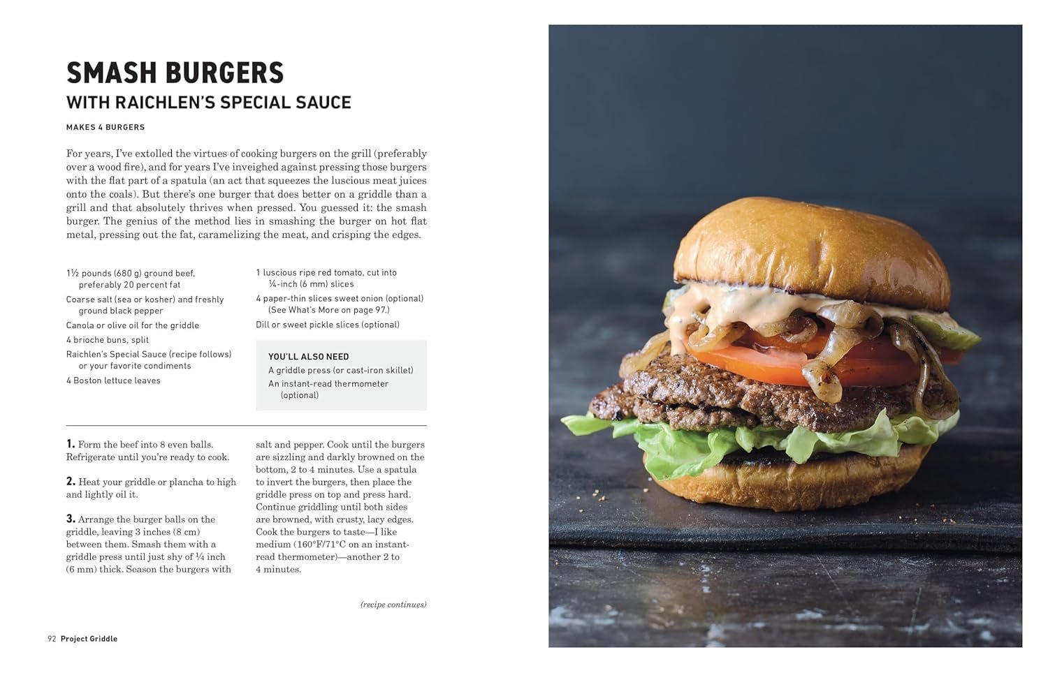 And then there are the recipes—each one as outrageously delicious and foolproof as the last, for classics like the crispiest smash burgers and tapas bar shrimp to an entire suite of heretofore un-grillable foods—egg-and-bacon breakfast feasts, potato latkes, crepes, French toast, and smoky fried rice. It’s Project Smoke for griddles—and don’t think of buying one without its guidance.