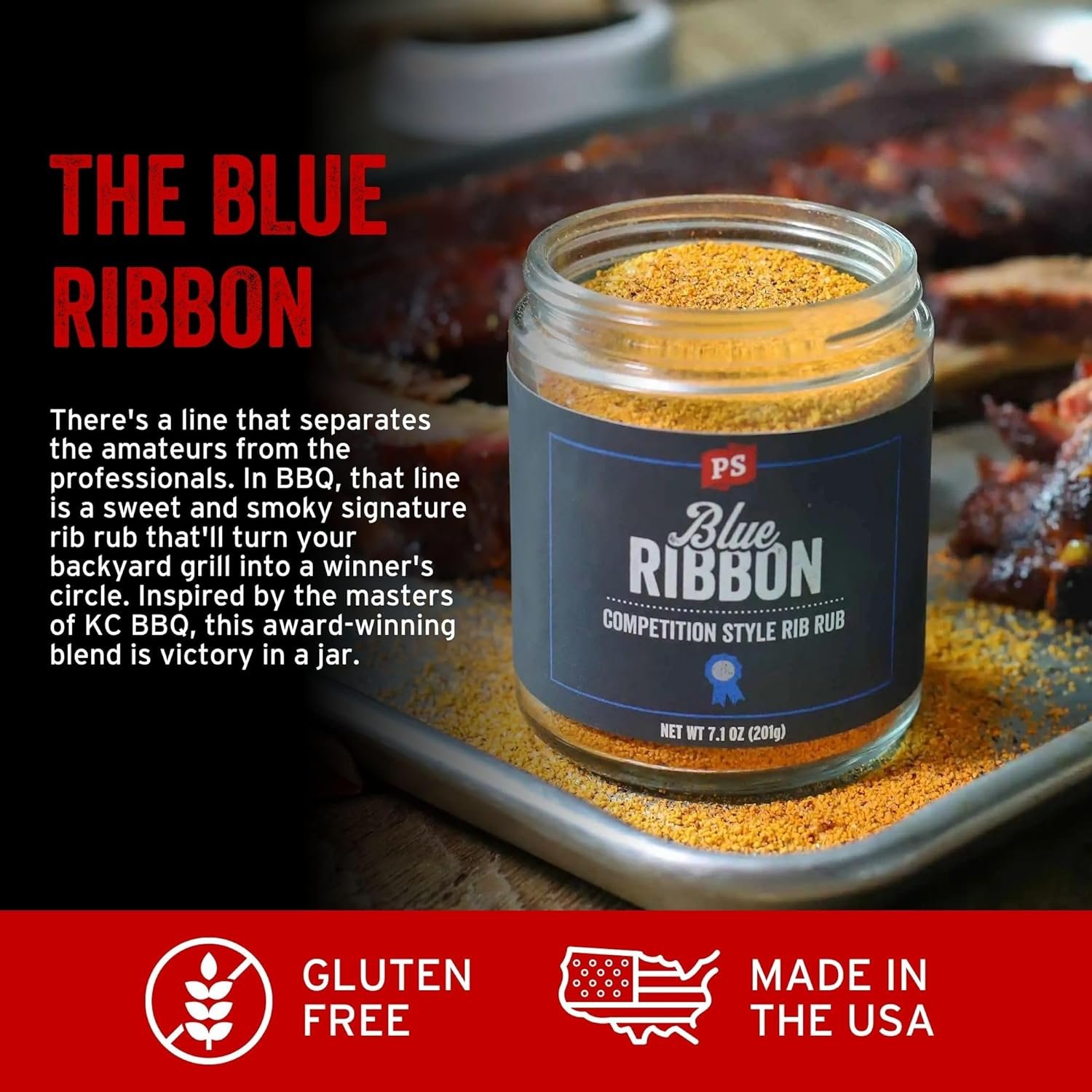 PS Seasoning Blue Ribbon Rib Rub – Sweet and Smoky Competition Style BBQ Seasoning for Smoking and Grilling – Kansas City Spice Blend and Dry BBQ Rub for Prime Rib, Steaks, Pork, Chicken, Beef Brisket