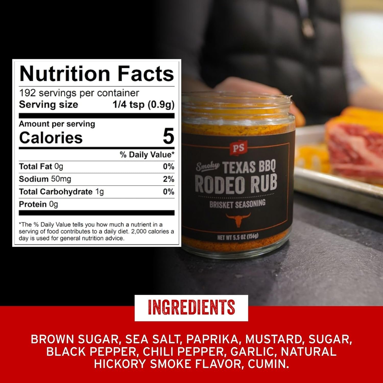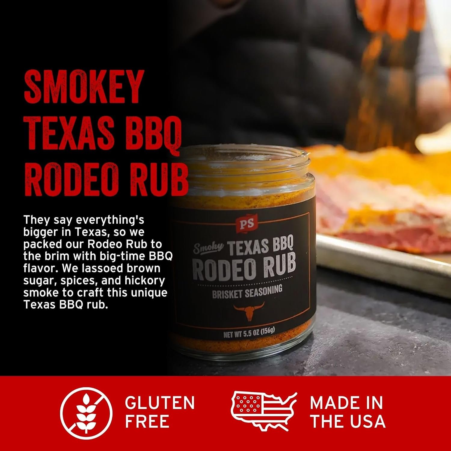 PS Seasoning Texas-Style Brisket Rodeo Rub – Dry BBQ Rubs and Spices for Grilling, Smoking, Roasting – Smoky Texas Flavor, BBQ Seasoning Spice Blend for Beef Brisket, Steak, Pulled Pork, Chicken