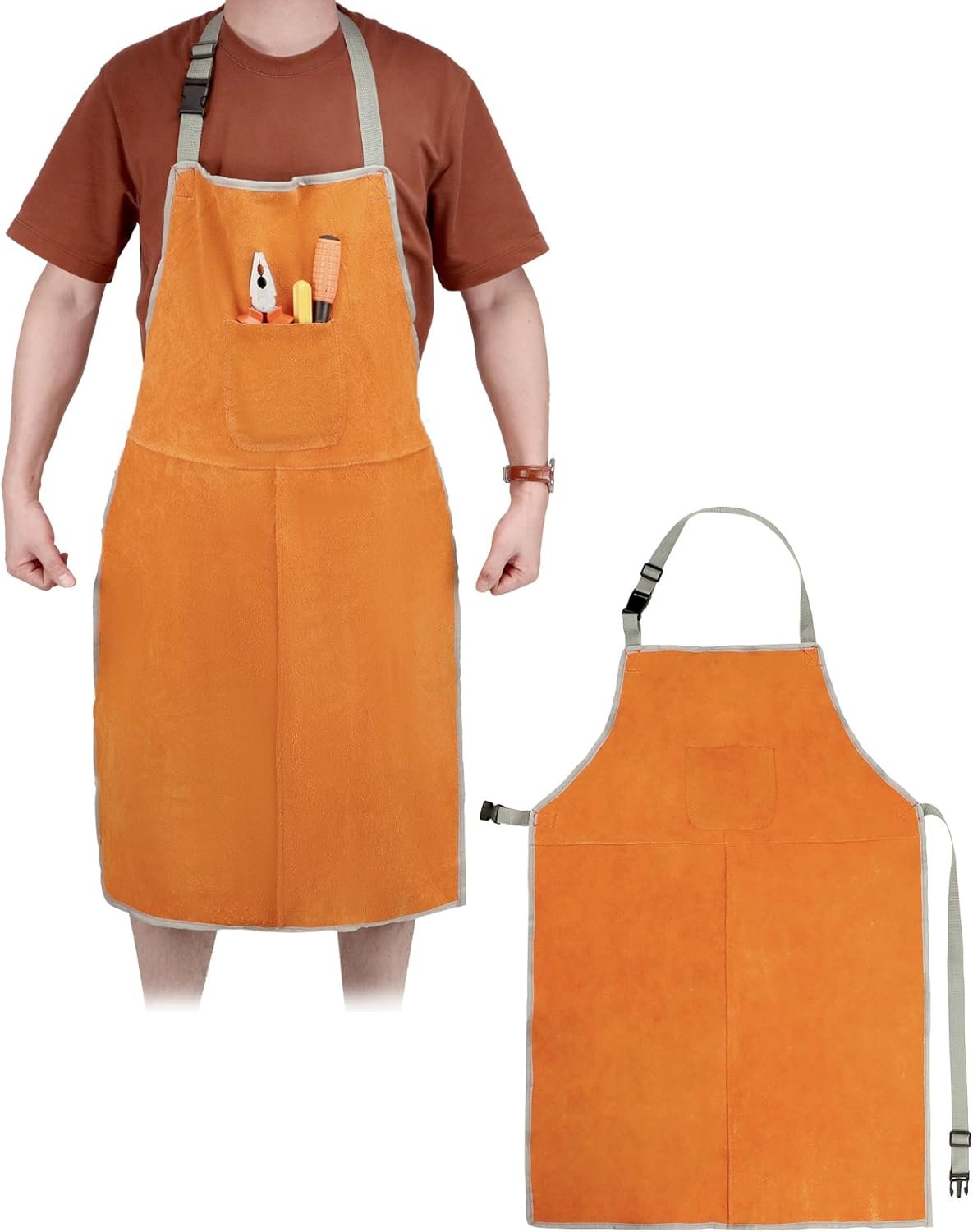 This work apron is made of thick cutaway cowhide, so it’s super durable and built to withstand even the toughest jobs. Plus, it’s both flame and wear-resistant, so you can rest easy knowing you’re protected from any flying sparks or welding splatter.