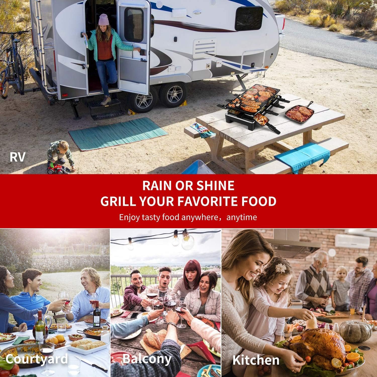 [HEALTHY COOKING AND EASY CLEANUP] – The raclette indoor grill has 8 individual grill pans for raclette cheese, cooking sides and sauces. It is also suitable for keeping food warm. Non-stick coating of the top plate and pans for healthier cooking with no need for butters or oils. Non-stick coating makes it easier to handle food removal and cleaning.