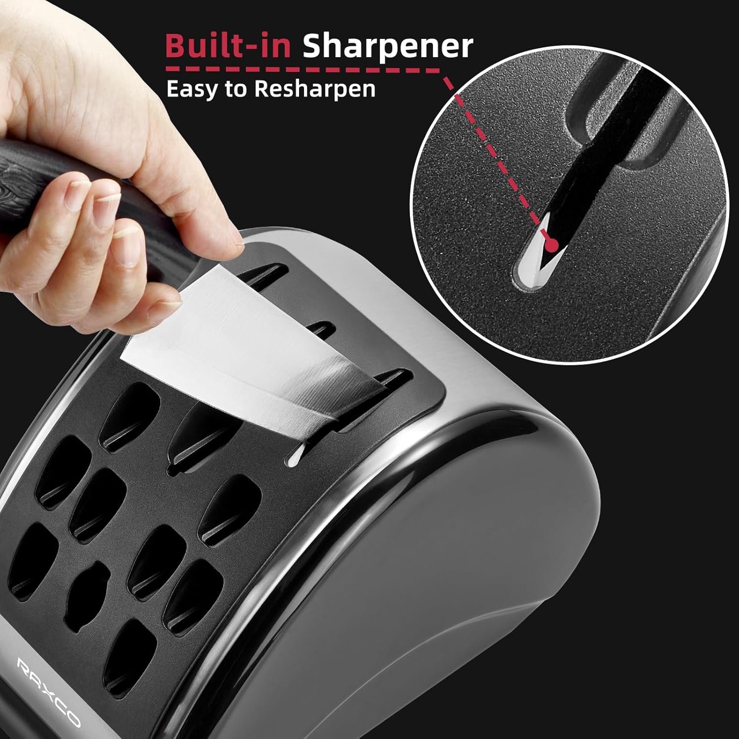 Compact Knife Set with Block:Provides Sleek Looks and Space-Saving,Ideal for various modern kitchens.Saves 40% counter space vs traditional knife block sets.