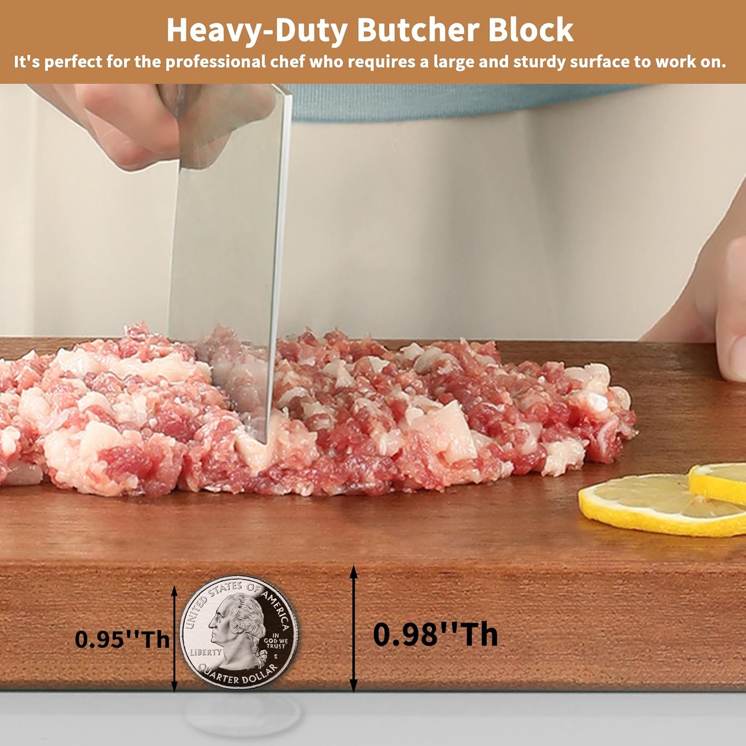 SUPERIOR FLATNESS & THICKNESS for KITCHEN WORK: Whether it’s butchering and bone tasks or everyday tasks in the kitchen, this oversized cutting board will excel perfectly. It provides a spacious, perfectly flat surface, with a sturdy structure and large size, offering the strength and stability required for heavy-duty use